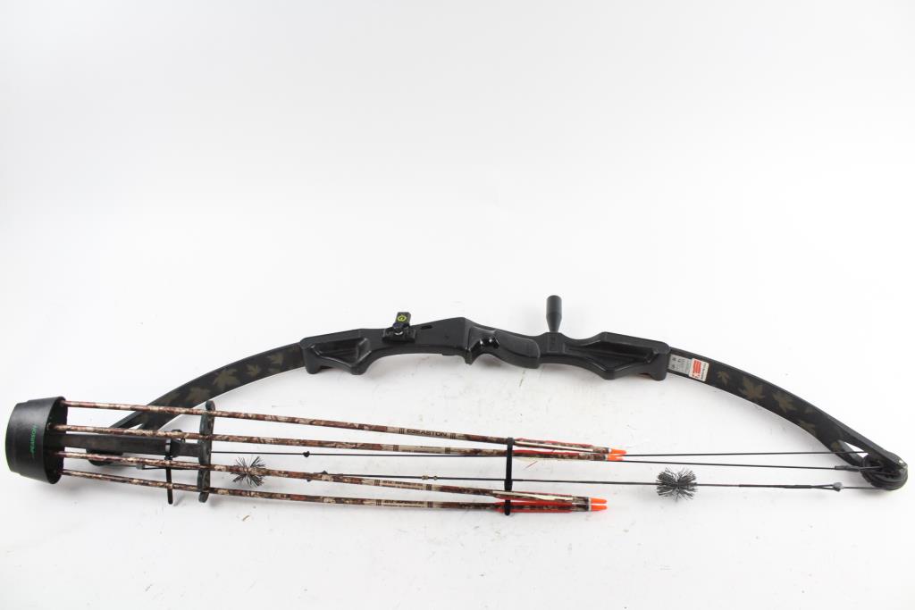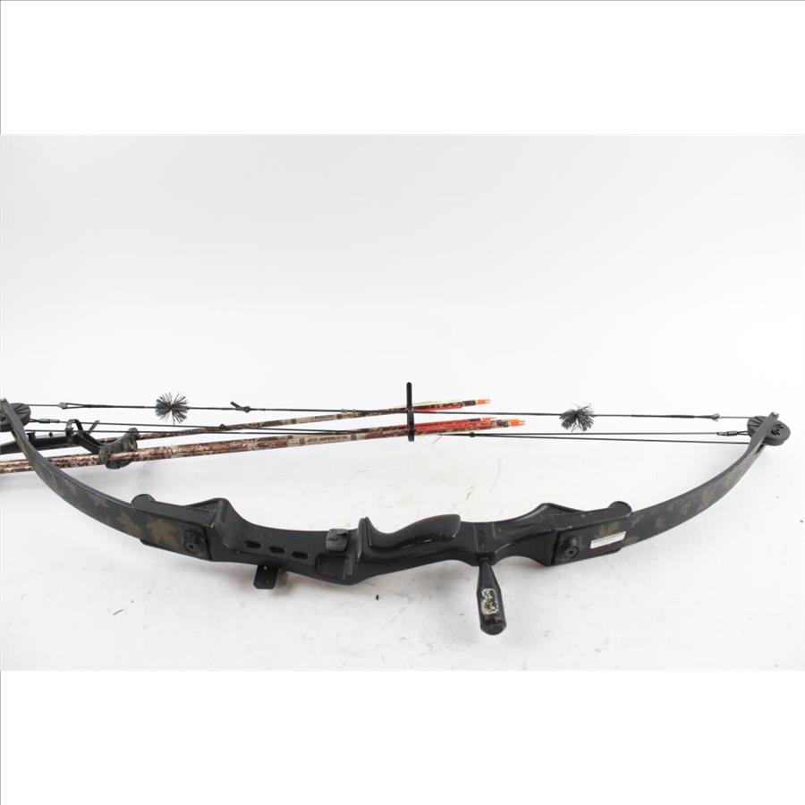 Get a great deal with this online auction for a bow presented by Property Room on behalf of law enforcement or public agency client. Model: unknown Color: Camo and black Bow Length: 44" Draw Length: 37" Draw Weight: 60lbs Draw: Right Handed Accessories: Includes 4 arrows Cosmetic Condition: Good with scratches and scuffs. Shipment by PropertyRoom to any jurisdiction does not mean this item is legal in such jurisdiction. It is your responsibility to have knowledge of, obey, or comply with all applicable laws relating to this item.