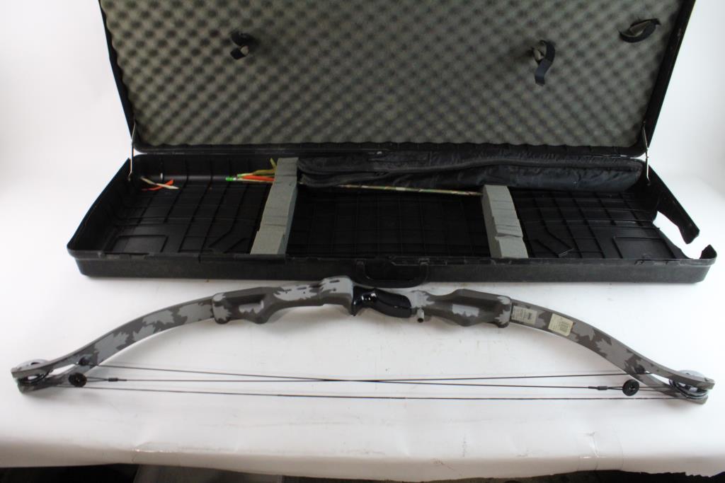 Get a great deal with this online auction presented by PropertyRoom.com on behalf of a law enforcement or public agency client. Model: Ghost Color: Grey Camo Bow Length: 48" Draw Length: 30" Draw Weight: 65lbs Draw: Right Hand Accessories: Carrying Case, Arrows, Cosmetic Condition: Fair to good with scratches and dust Shipment by PropertyRoom to any jurisdiction does not mean this item is legal in such jurisdiction. It is your responsibility to have knowledge of, obey, or comply with all applicable laws relating to this item.