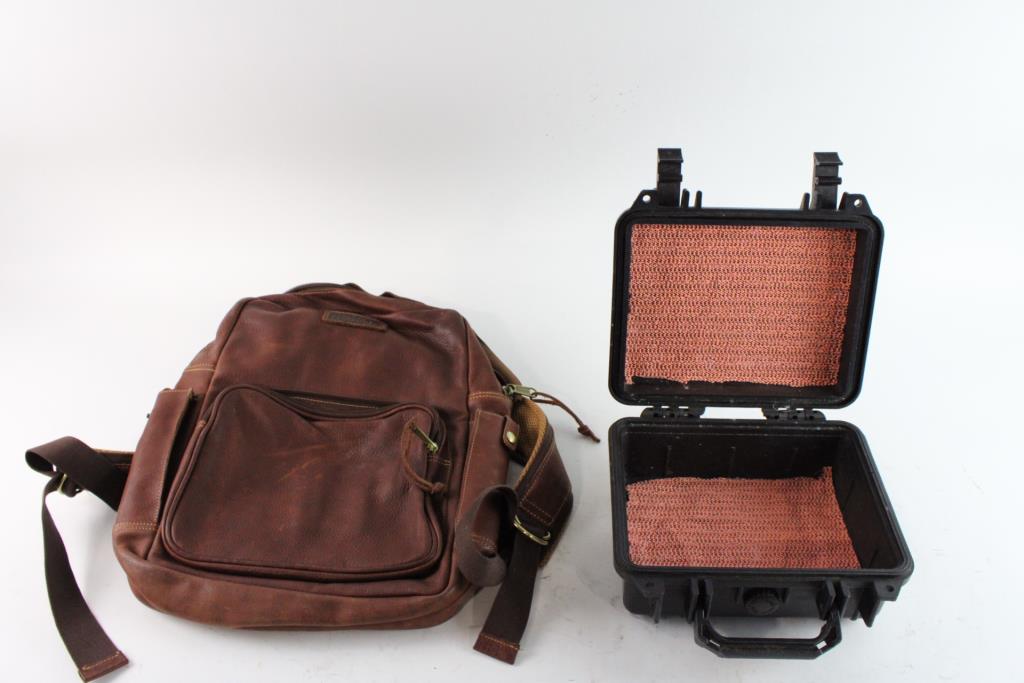 Get a great deal with this online auction presented by PropertyRoom.com on behalf of a law enforcement or public agency client. - Style: Pelican 1200 Case black, Duluth Trading Co. Leather backpack.