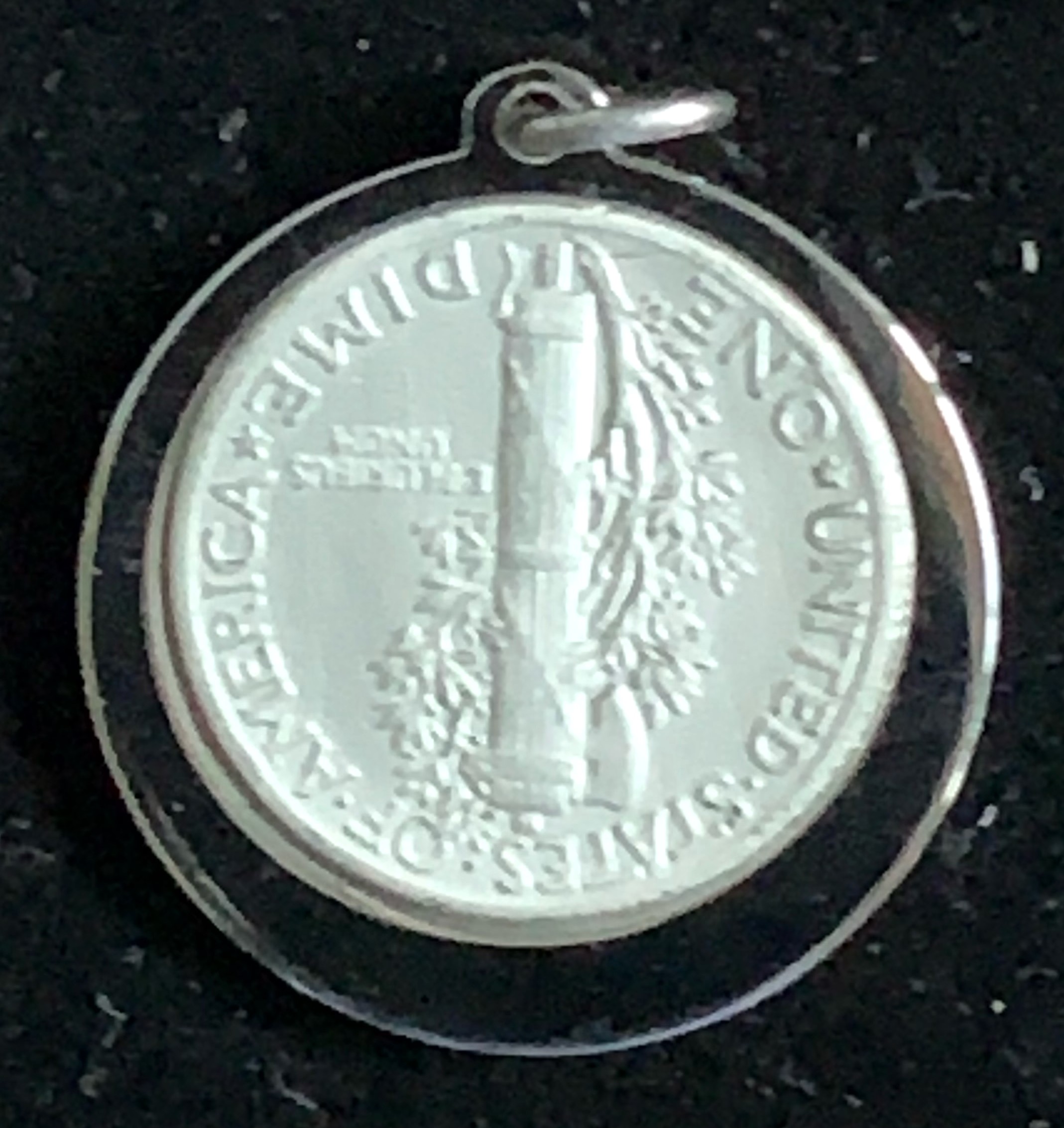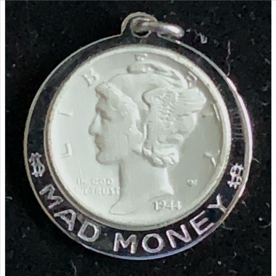 PENDANT 1944 MERCURY SILVER DIME IN MAD MONEY PENDANT