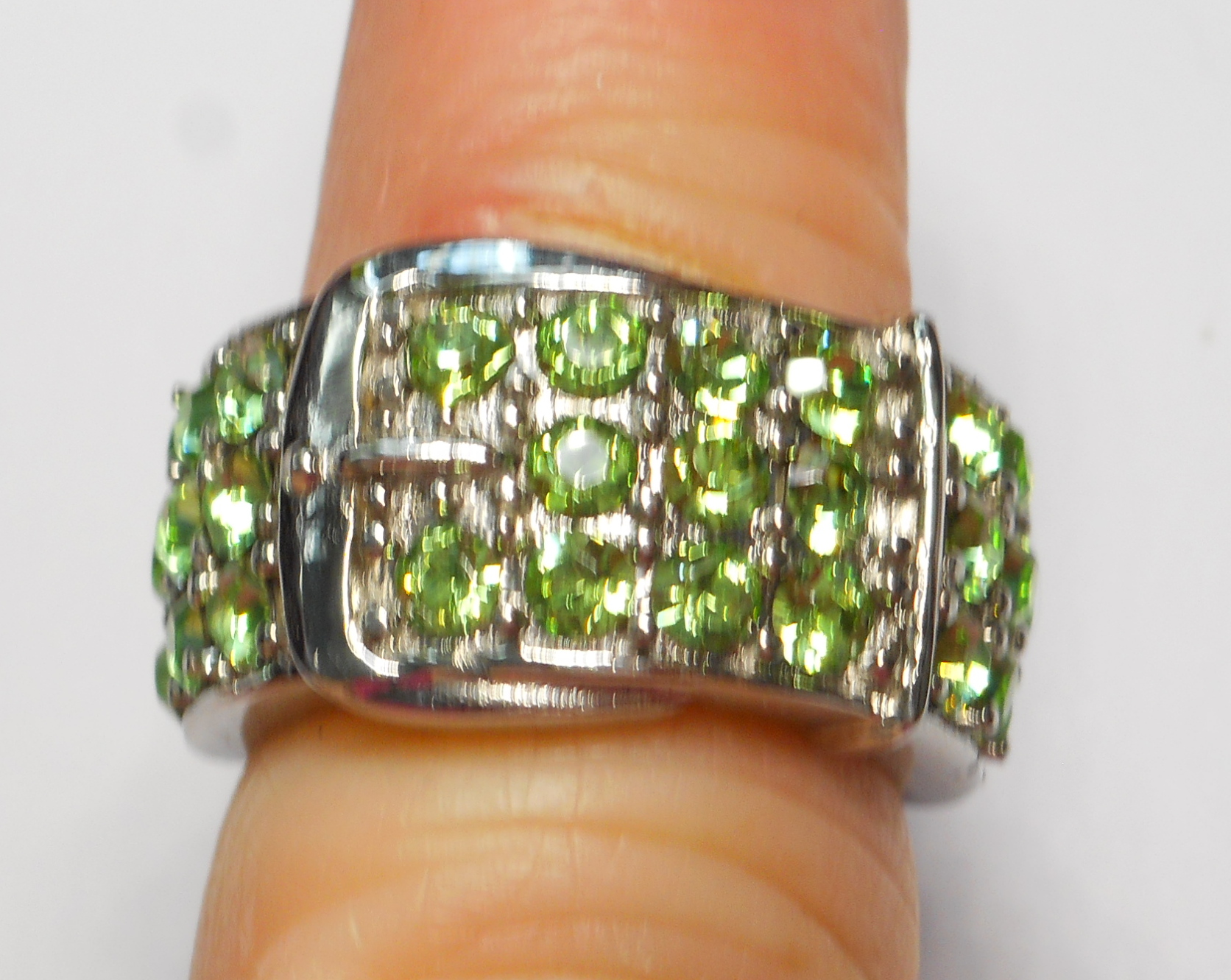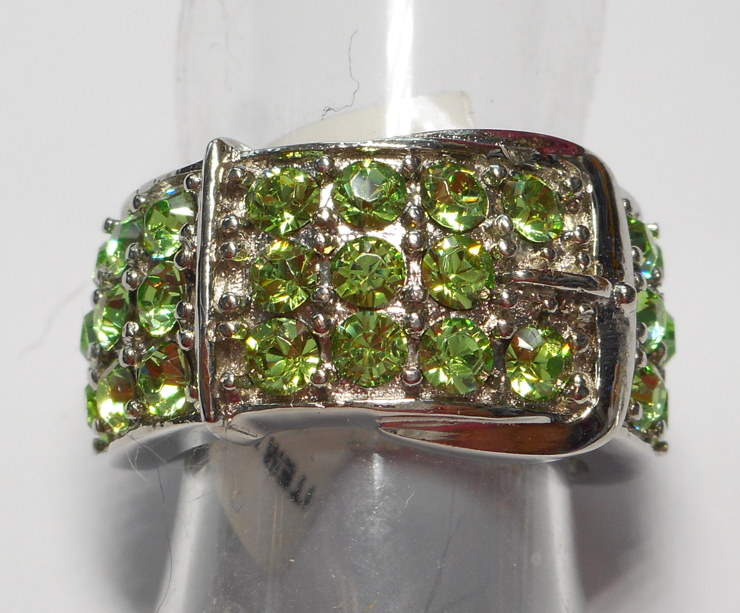 Peridot Color Genuine Swarovski Crystals Belt Buckle Ring |