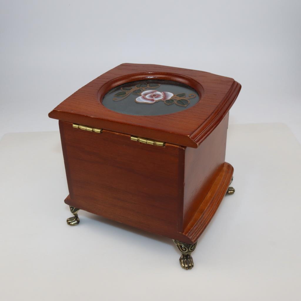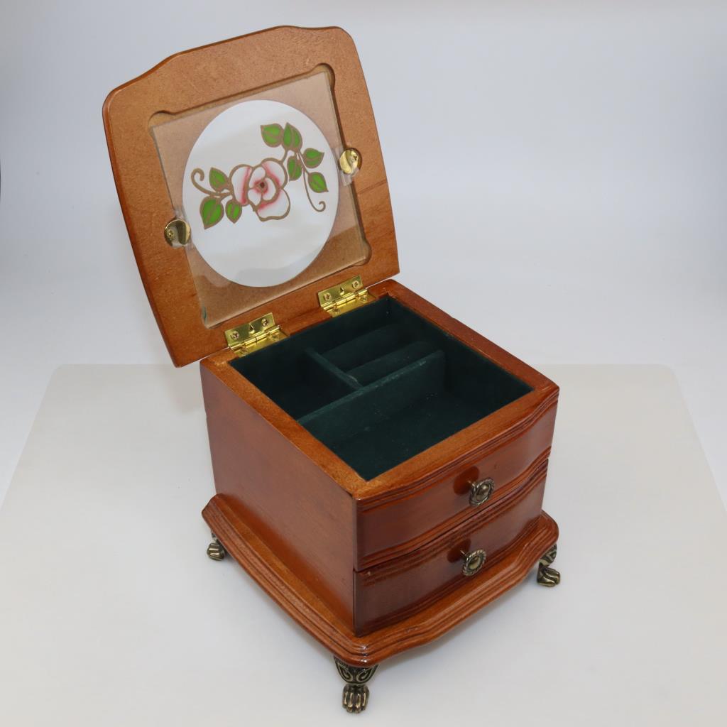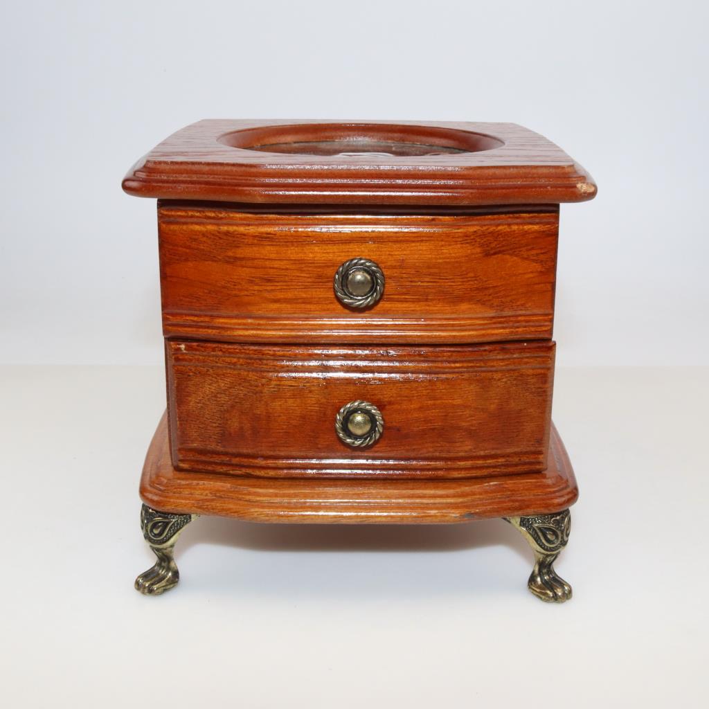 Petite Wooden Jewelry Box With Glass Top