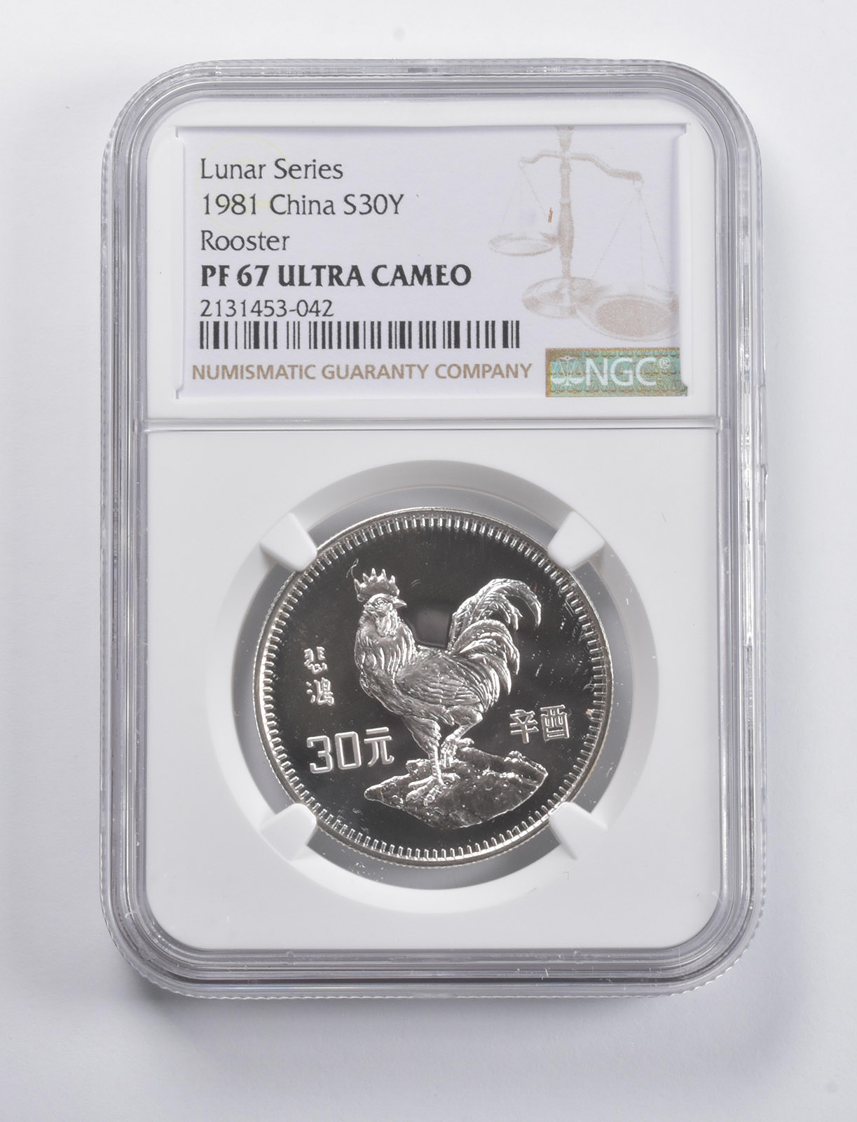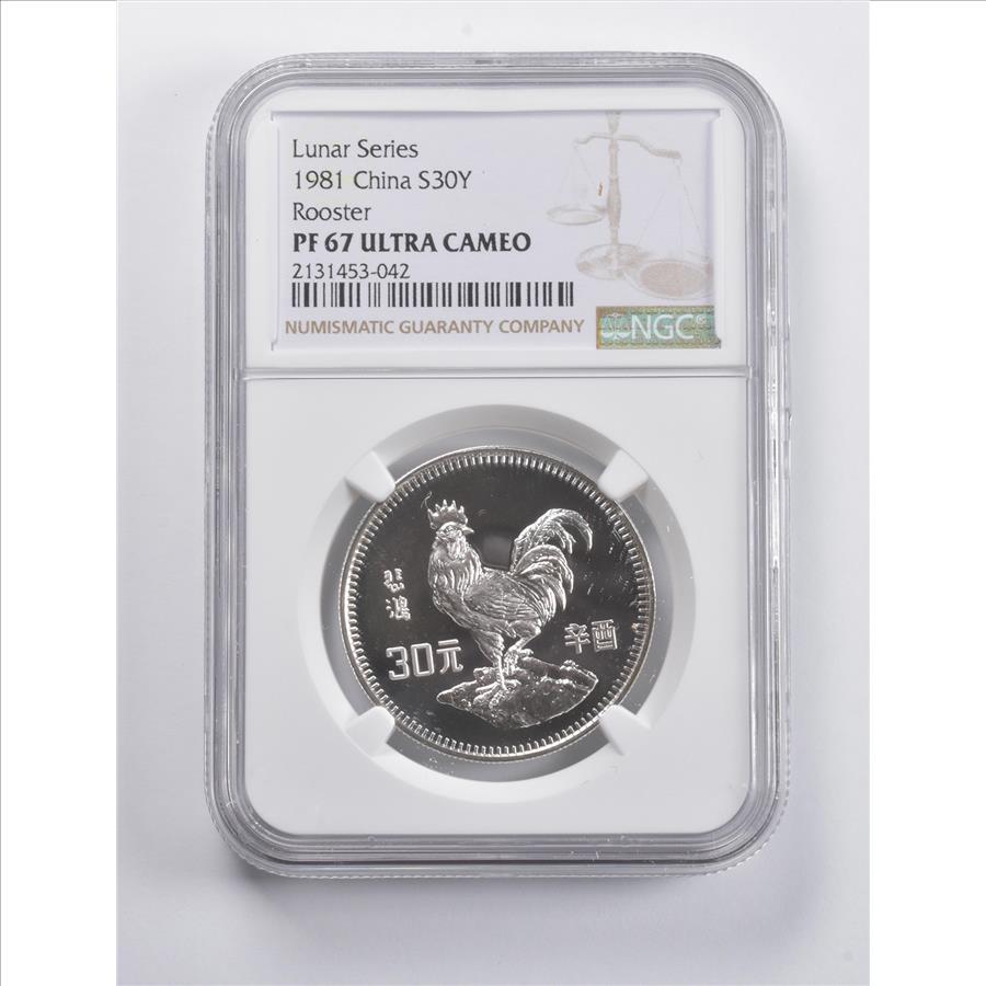 PF67 UCAM 1981 China 30 Yuan Silver Lunar Series Rooster NGC