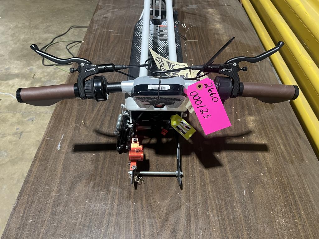 - Item info: electric, on/off button, digital screen, right toggle throttle, dual hand brakes, foldable handles, single headlight, brake light