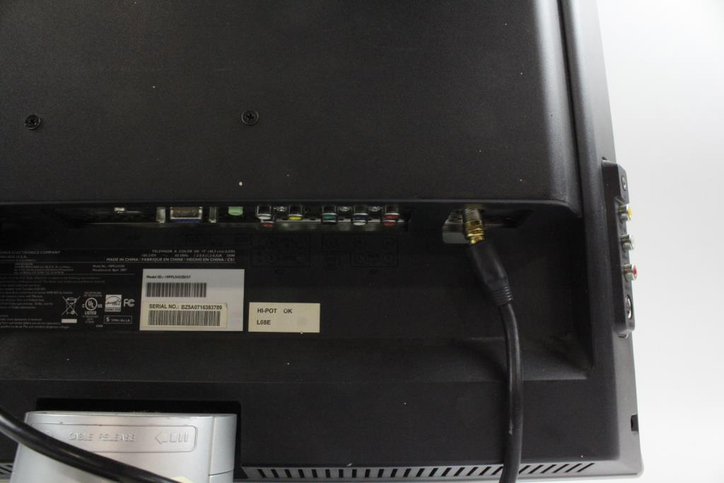 Get a great deal with this online auction for a TV presented by Property Room on behalf of law enforcement or public agency client. Model: 19PFL5422D Screen Size: 19" Date of Manufacture: 04/2007 Measurements: 19.5" x 14.5" Base: Yes Remote Control: No Power Cord: Yes Physical Condition: Good, scratches, scuffs and wear Testing Results: Item was tested for power only and it powered on, displayed menu. Input and output ports were not tested and may be non-functional. Item is sold "As Is".