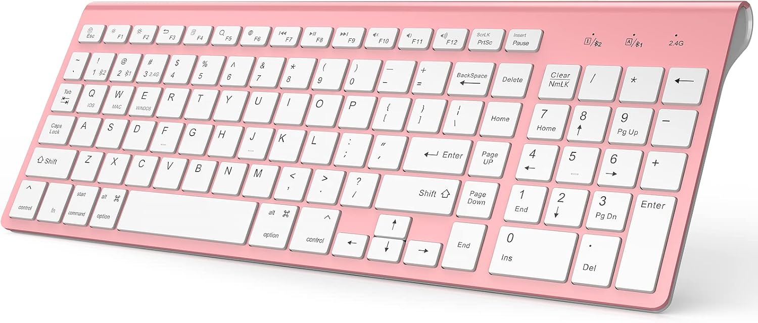 Pink Wireless Keyboard with Number Pad, Dual Mode Slim Keyboard Connects Up to 3 Devices for iMac/Mac,MacBook, iPad,Laptop,Android,Windows