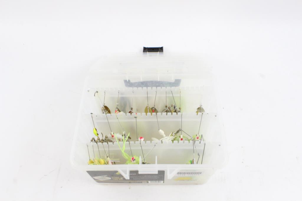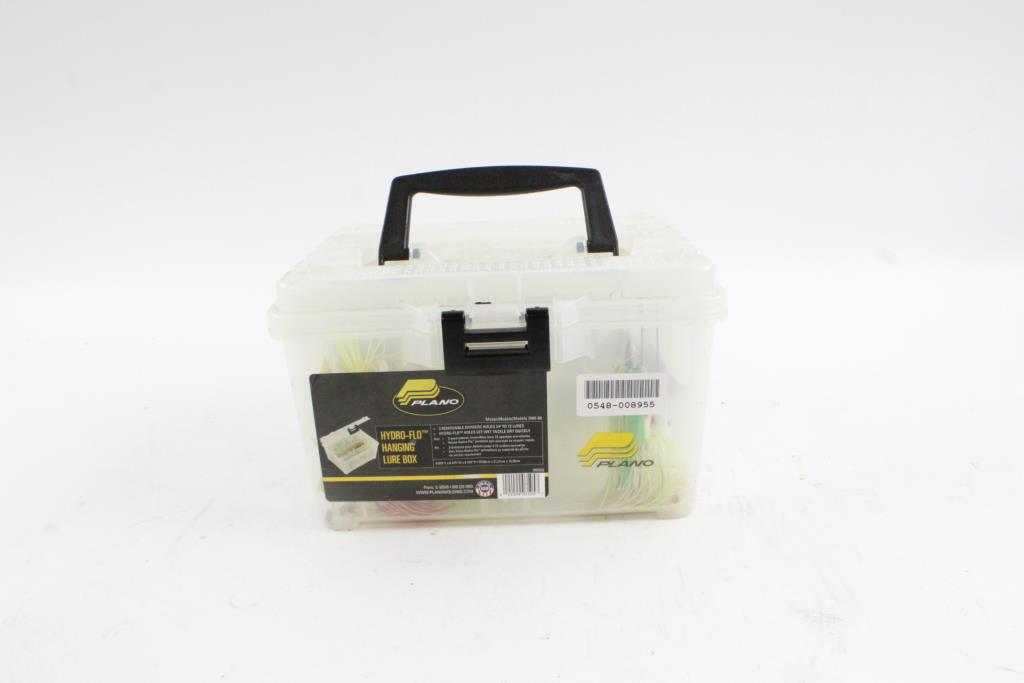 Get a great deal with this online auction for lure box and lures presented by Property Room on behalf of a law enforcement or public agency client. - Plano Hydro-Flo hanging lure box, 3505-00, 10" x 8" x 6"