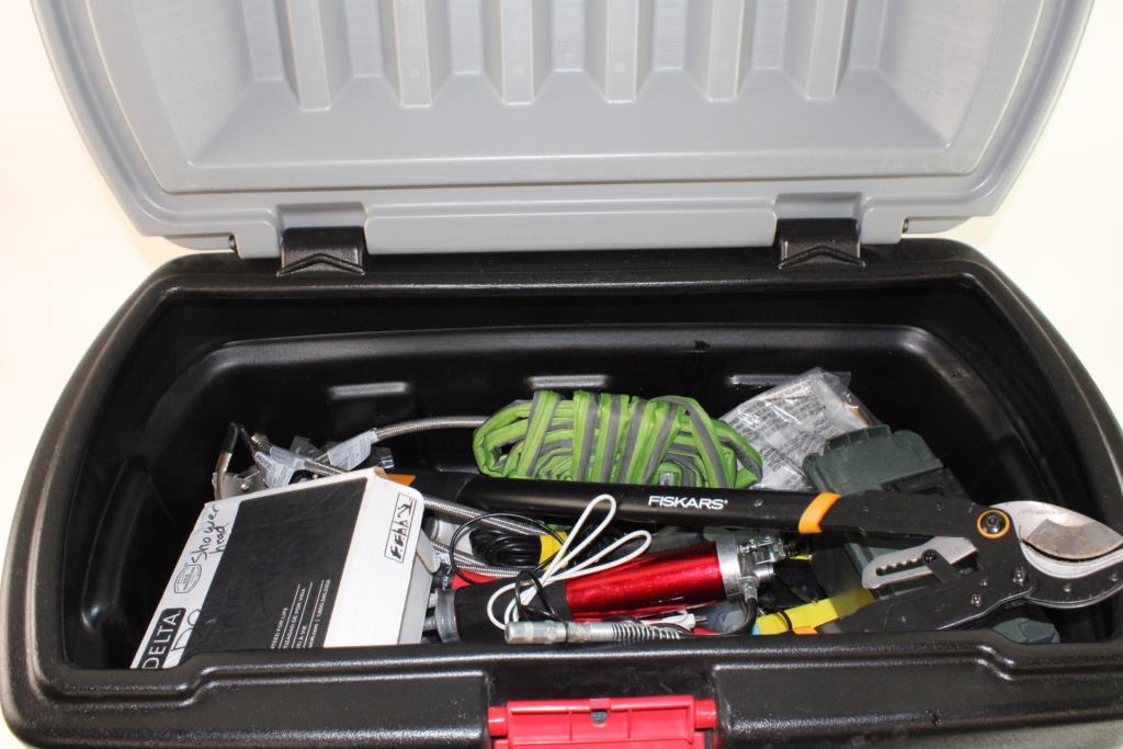 Plastic Chest With Assorted Tools & Equipment, 10+ Pieces