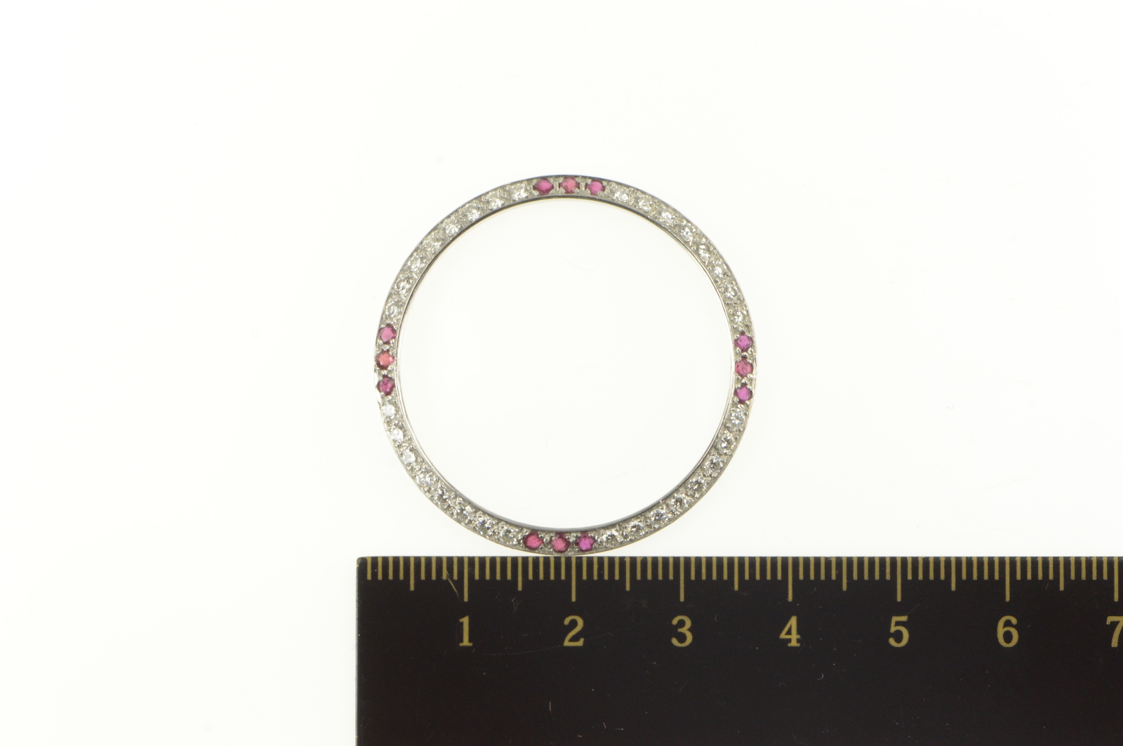 Item:  Platinum 0.90 Ctw Ruby Diamond Encrusted Watch Bezel