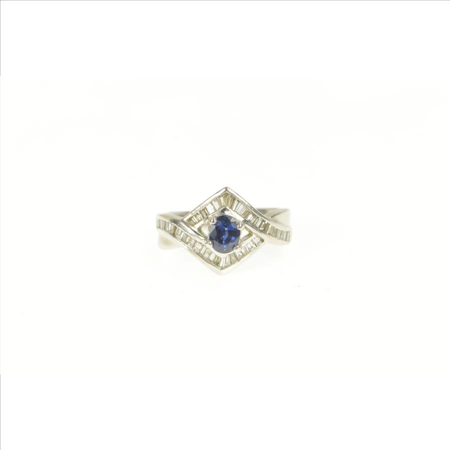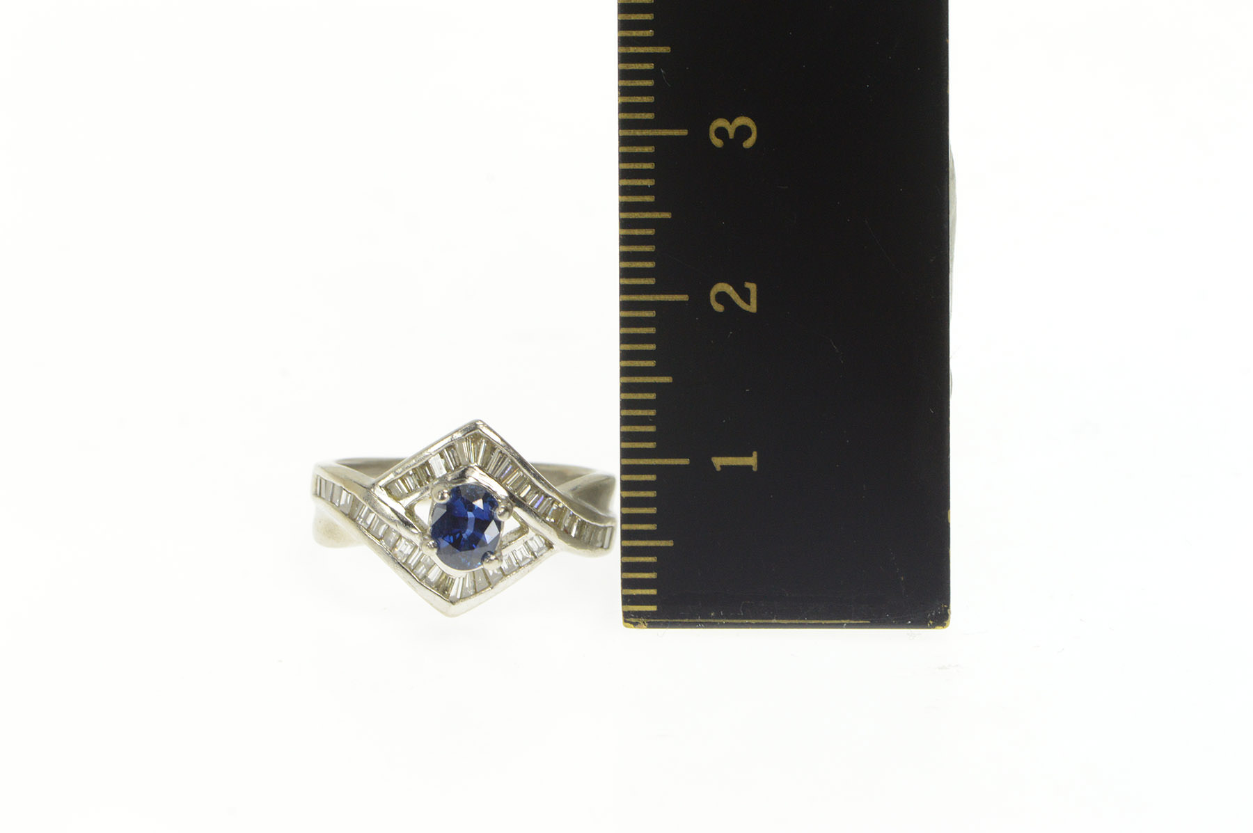 Platinum 0.97 Ctw Natural Sapphire Baguette Engagement Ring, Size 5