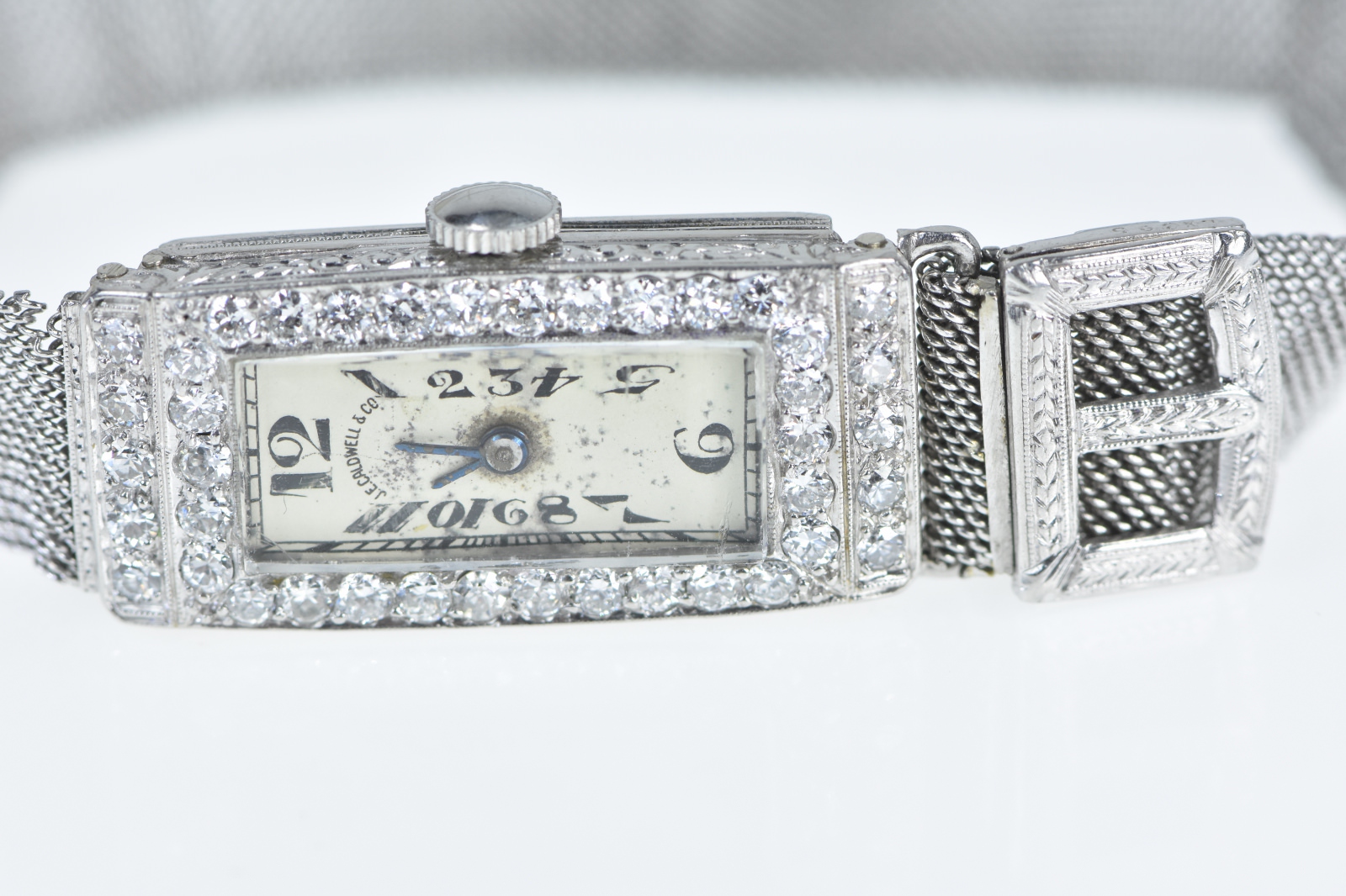 Platinum 1.50 Ctw Art Deco Diamond Mesh Chain Watch - Women's