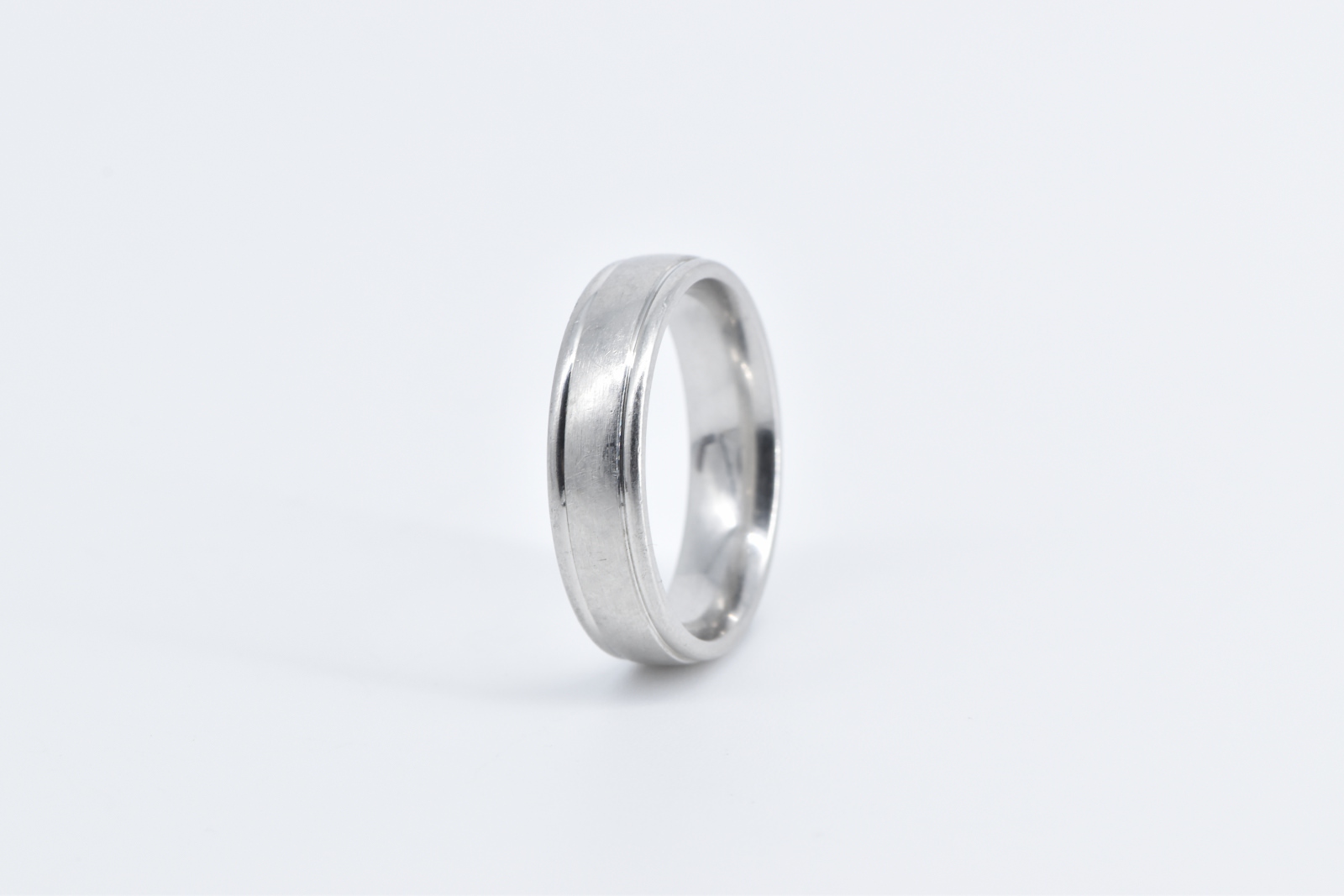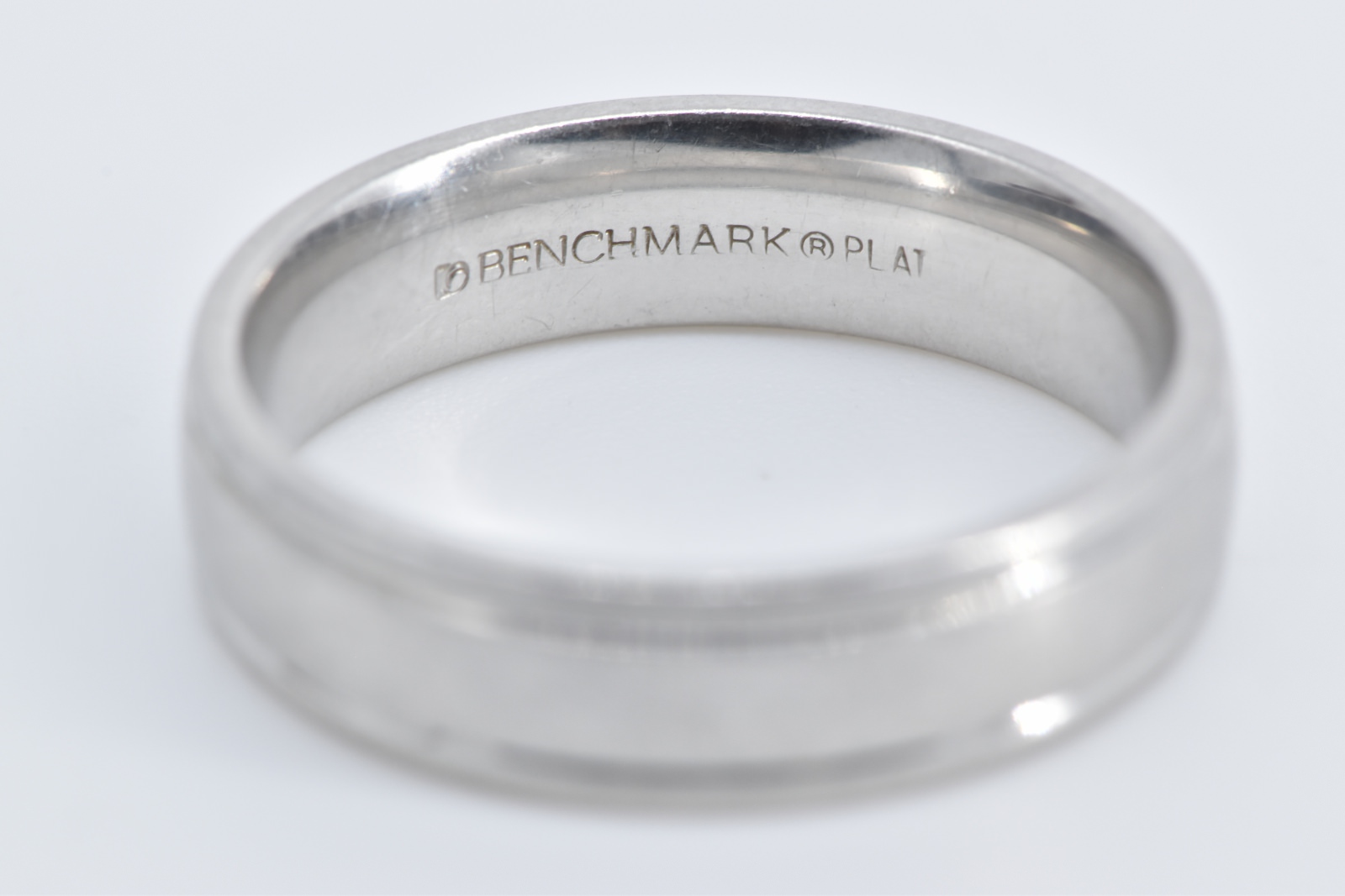 Item:  Platinum 5.9mm Grooved Benchmark Wedding Band Ring, Size 10.75