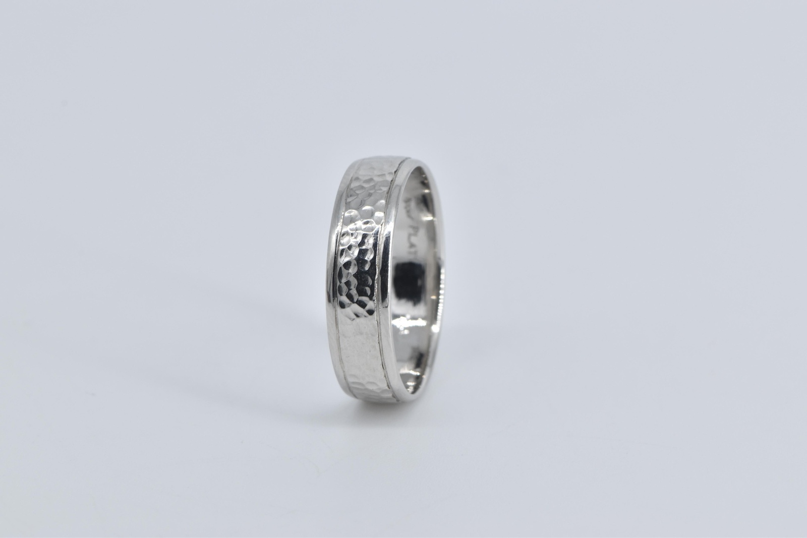 Item:  Platinum 5.9mm Hammered Novell Wedding Band Ring, Size 10.5