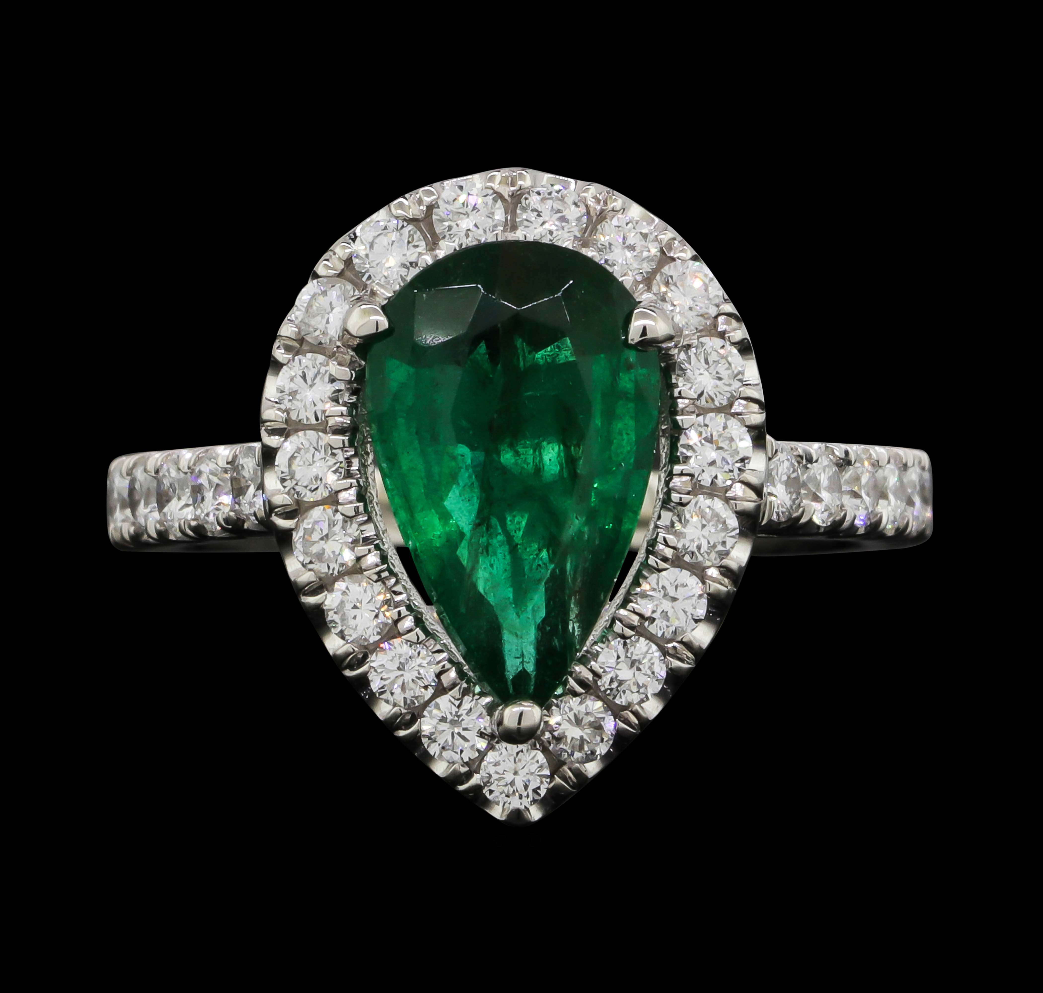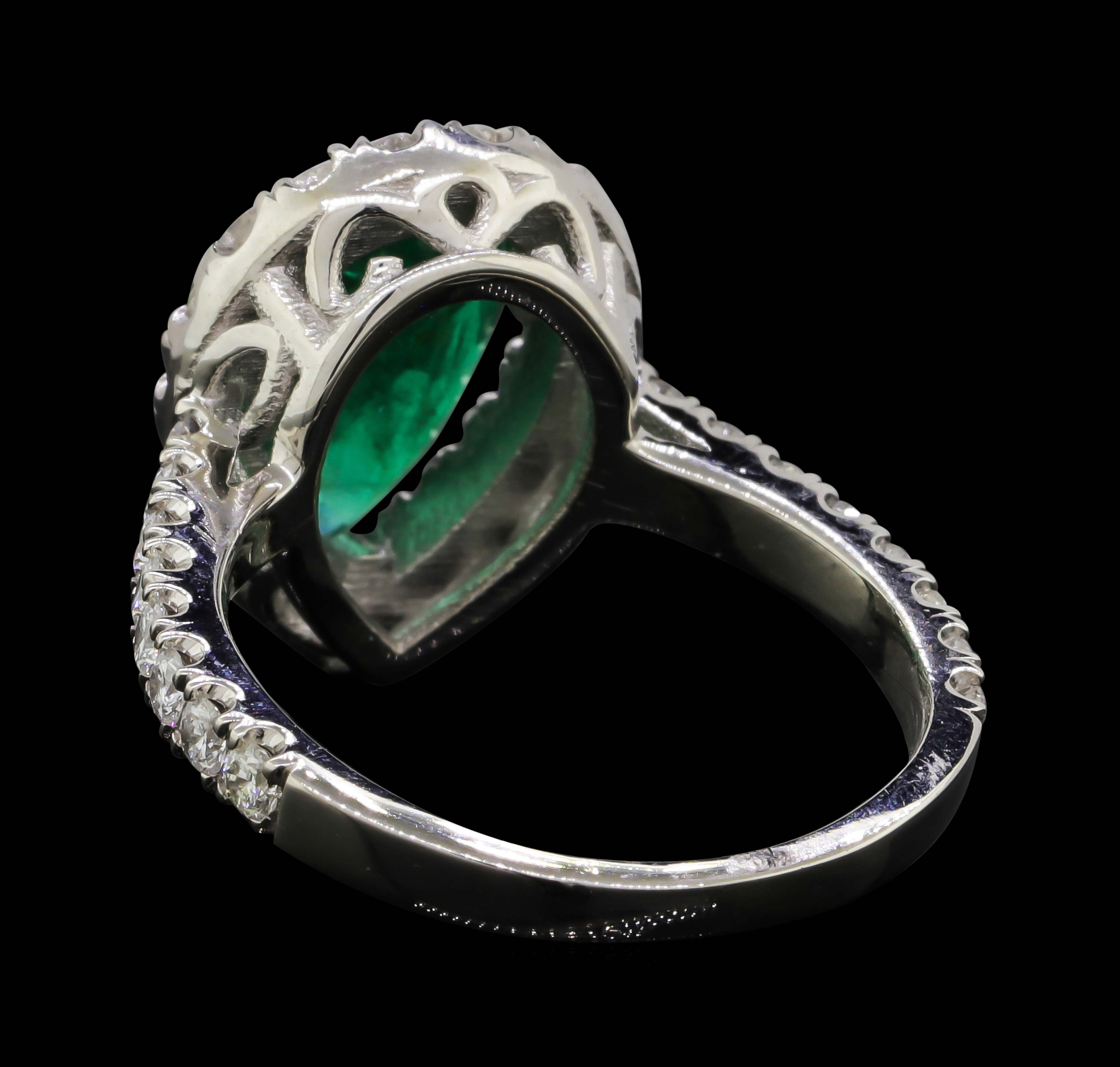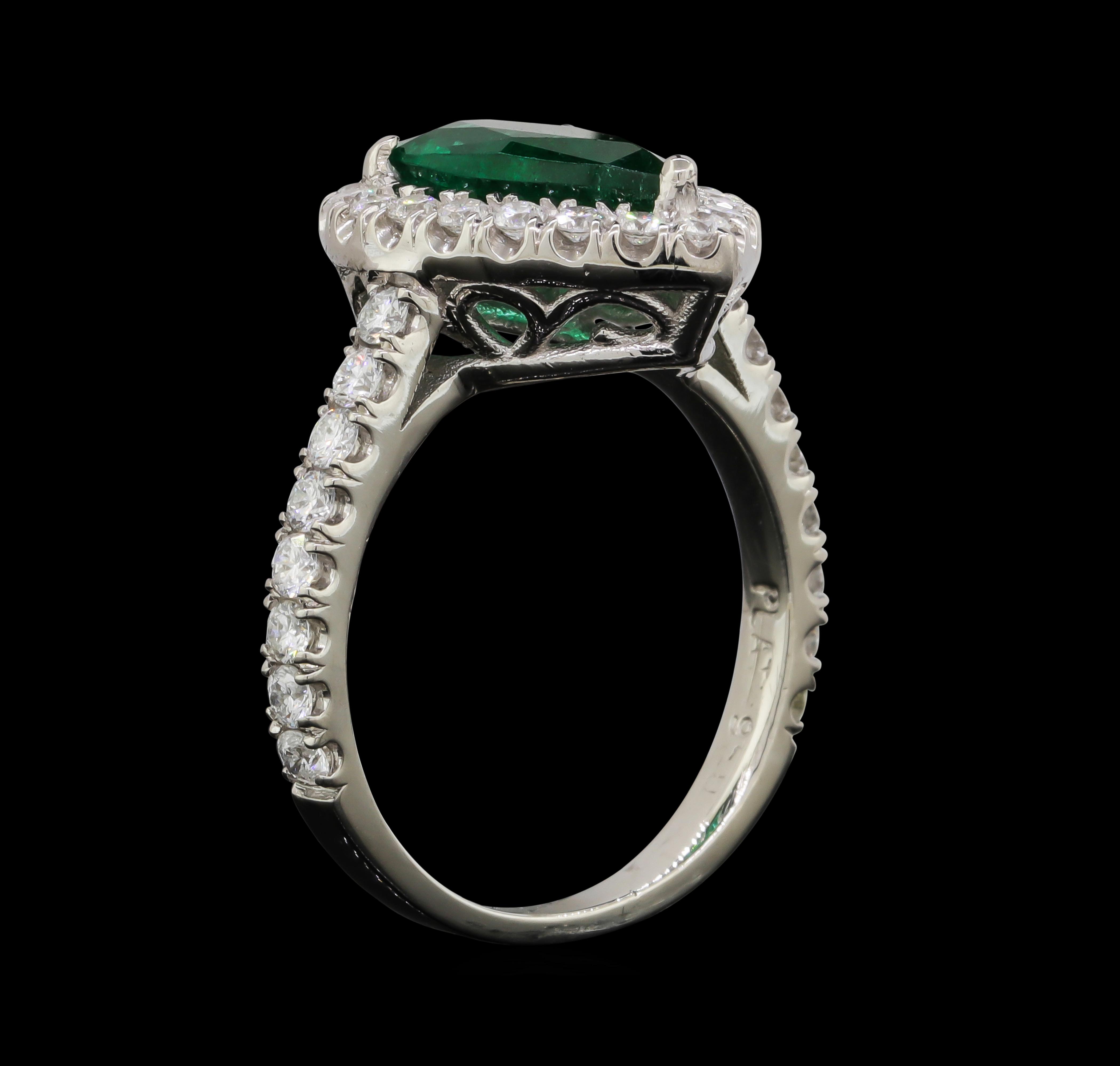 Platinum 7.60 Grams Diamond Halo Style Lady's Ring With Natural Emerald Center