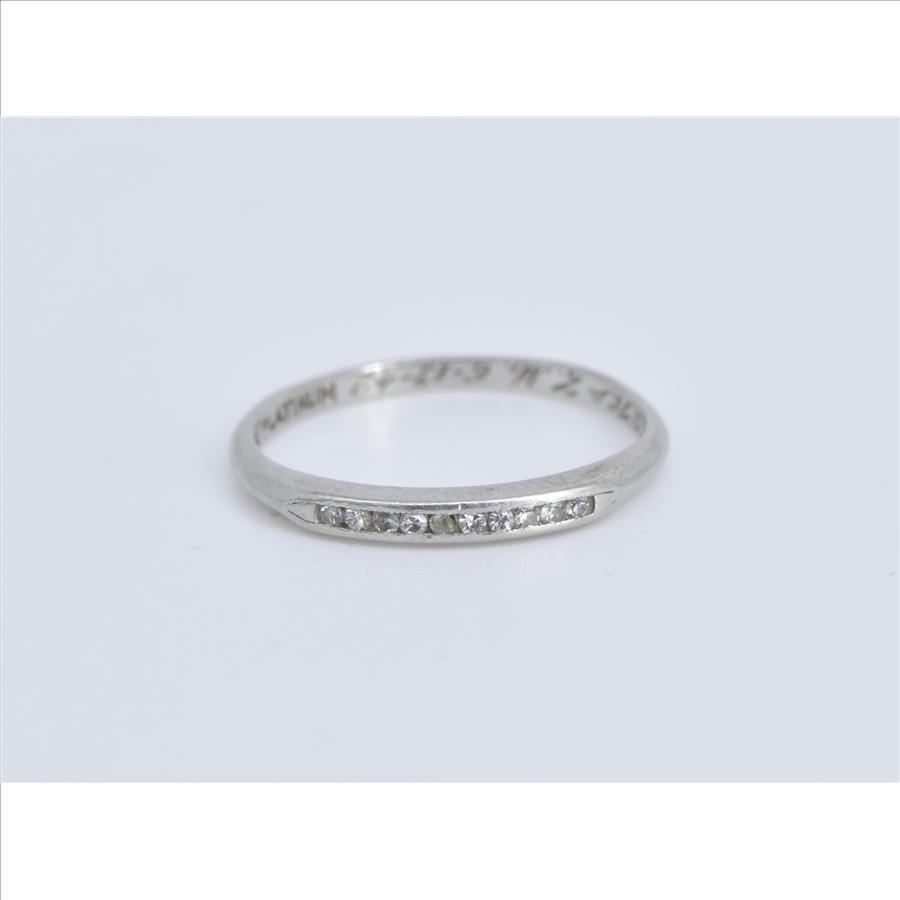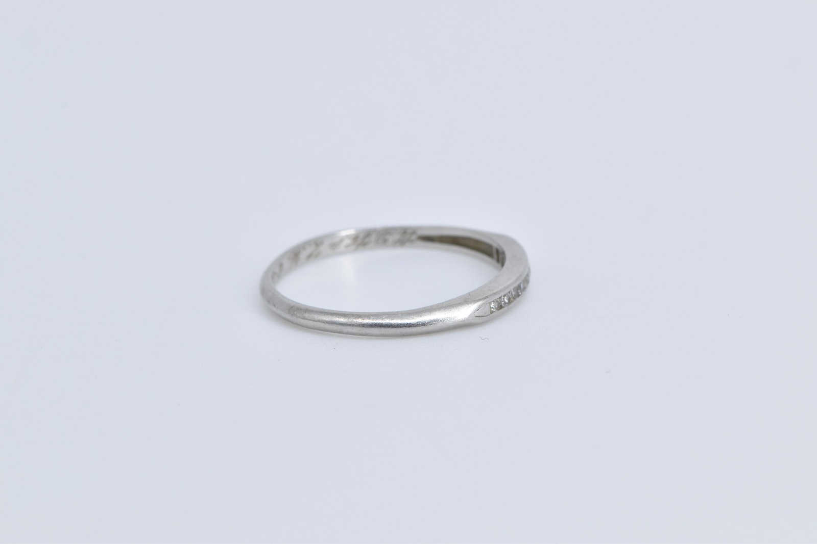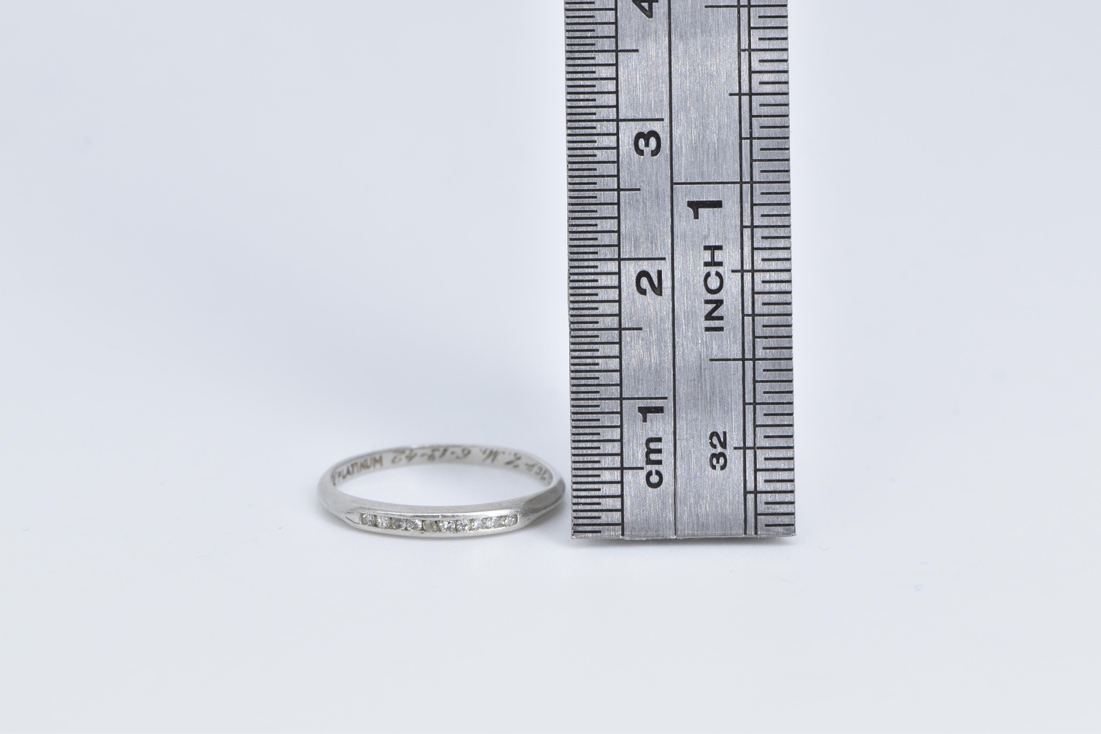 Item:  Platinum Art Deco Diamond WWII Era Wedding Band Ring, Size 5.5