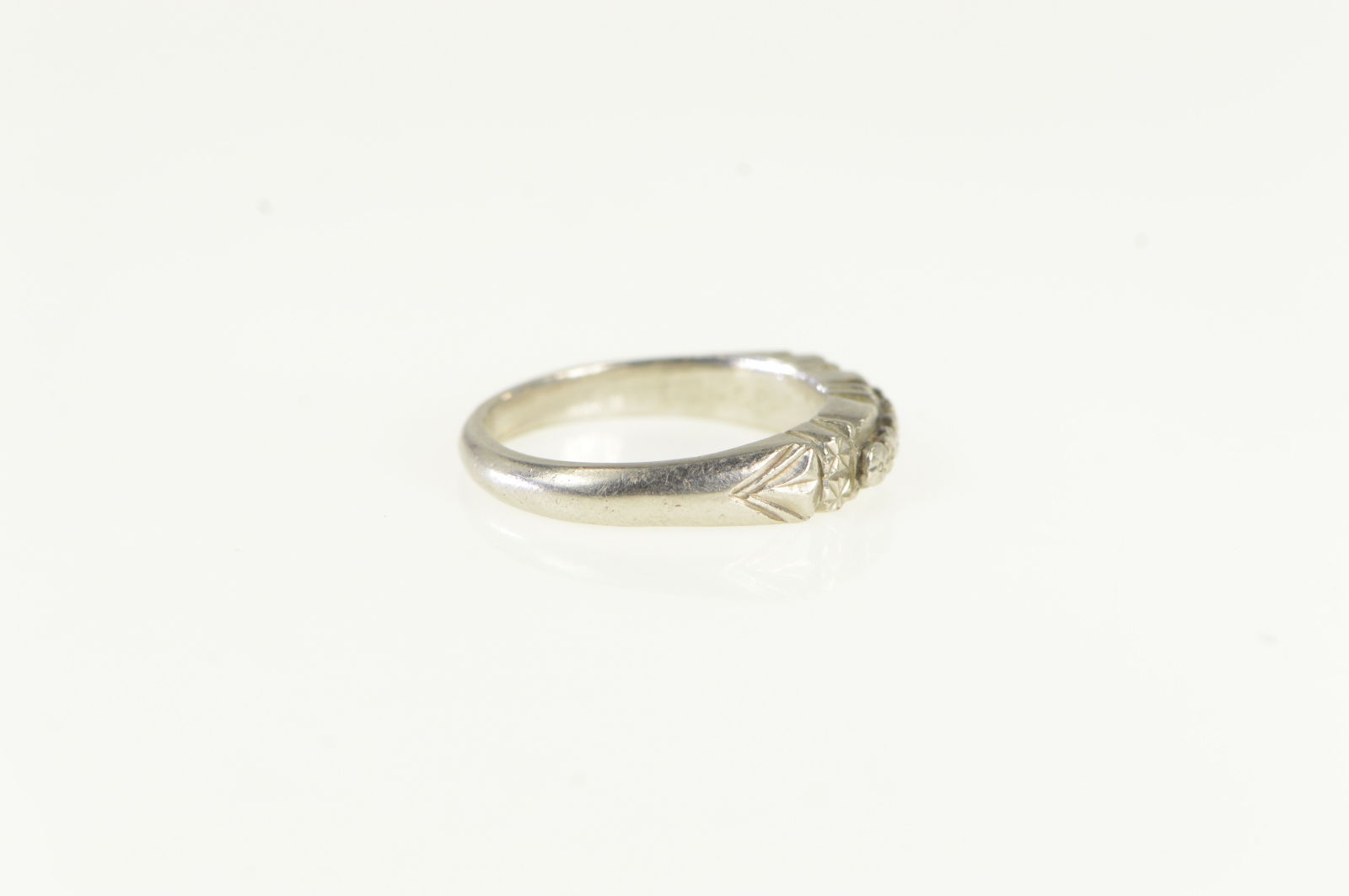Item:  Platinum Art Deco Orange Blossom Wedding Band Ring, Size 4