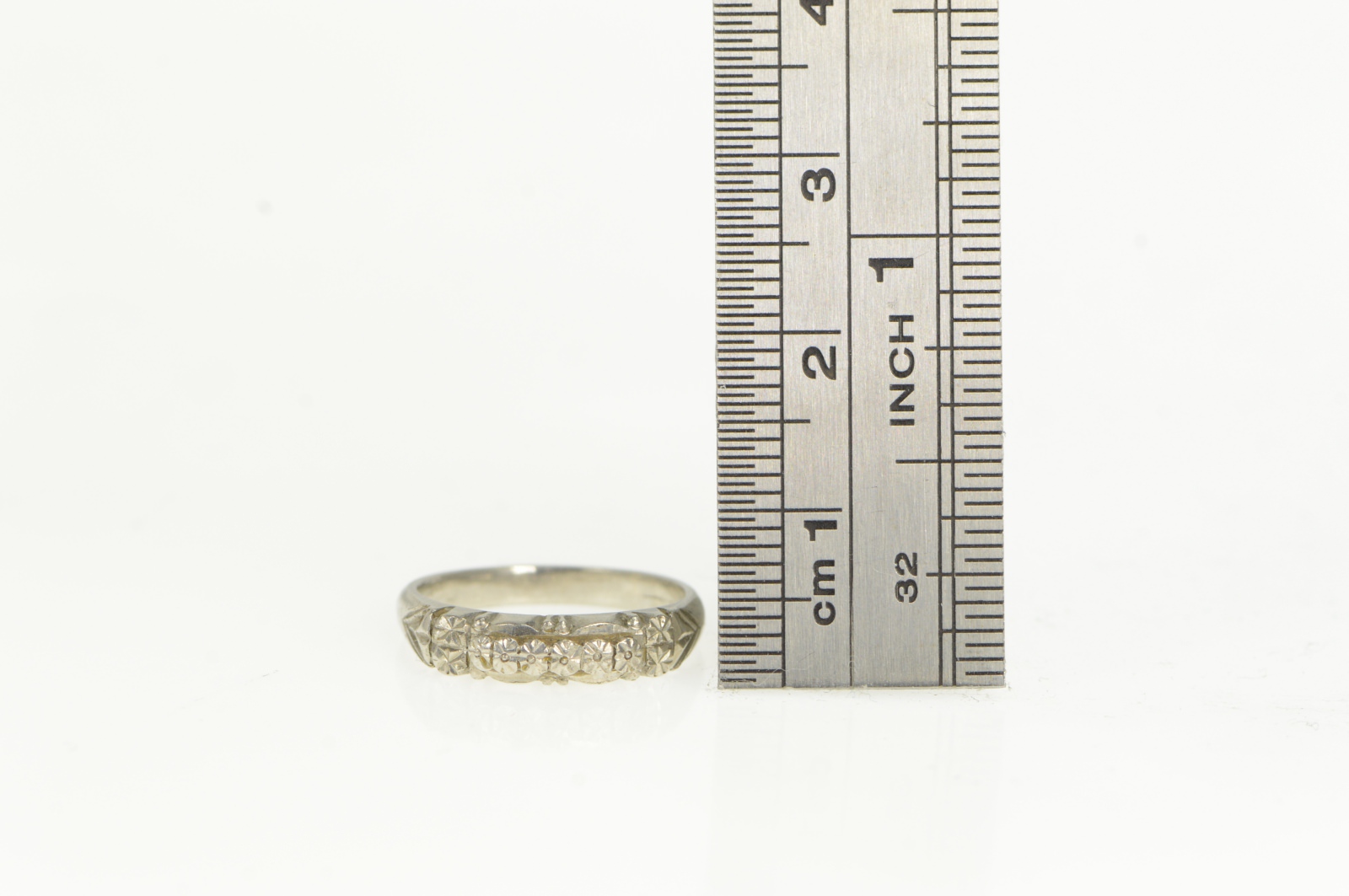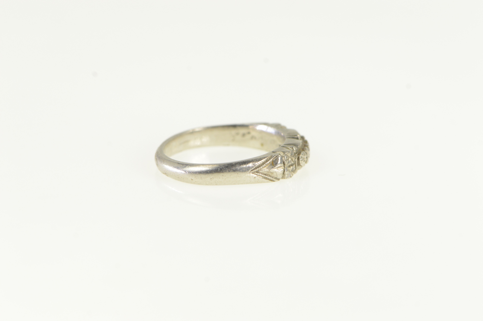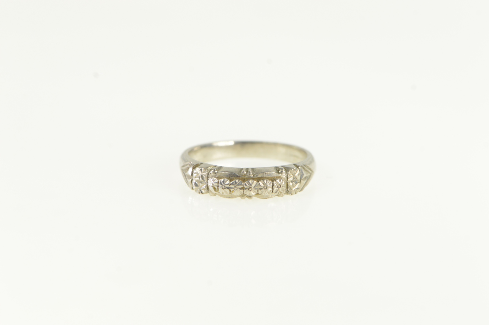 Item:  Platinum Art Deco Orange Blossom Wedding Band Ring, Size 4.25