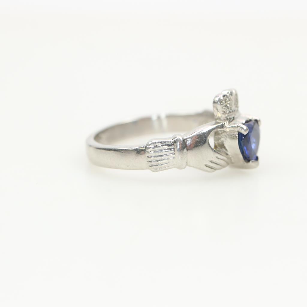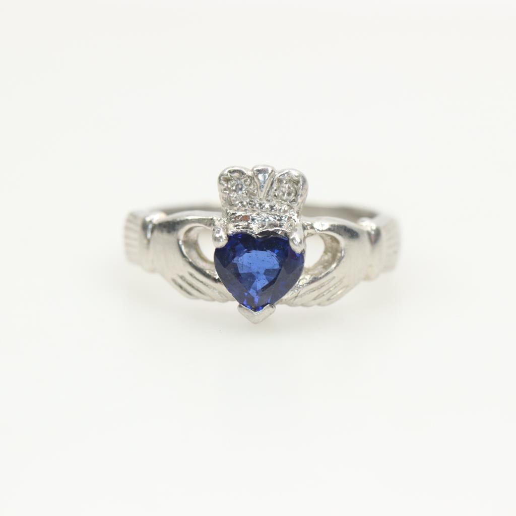 Platinum Diamond And Sapphire Claddagh Hands Ring