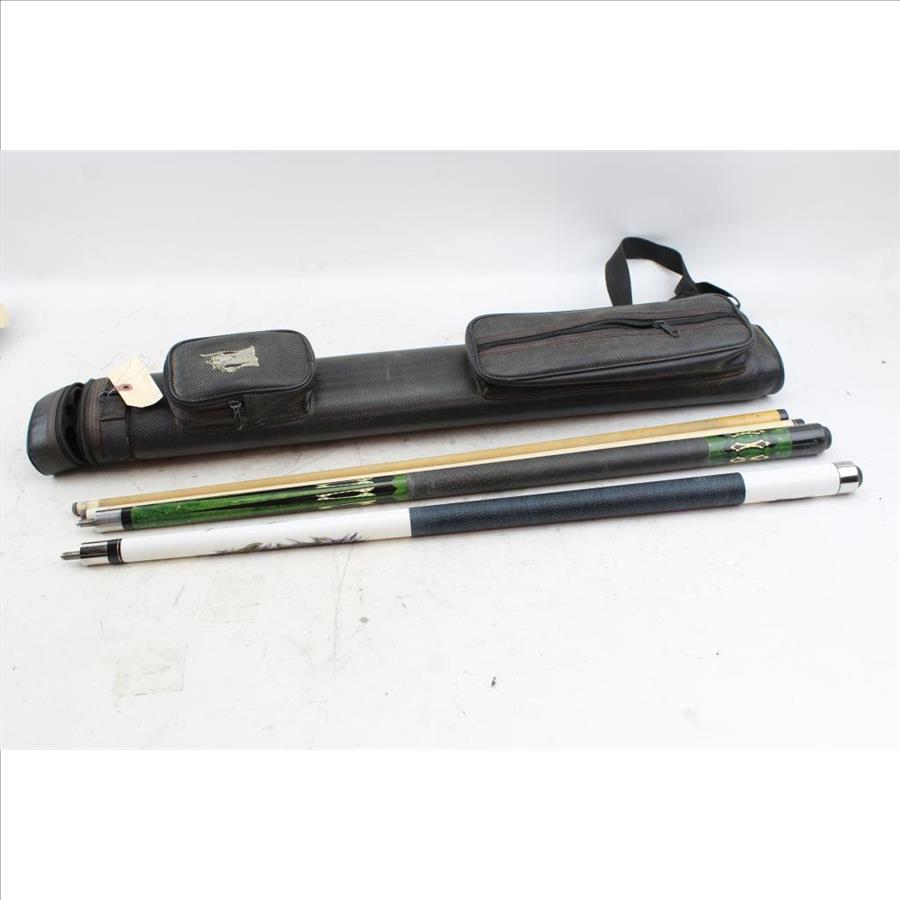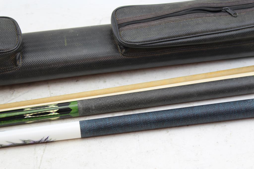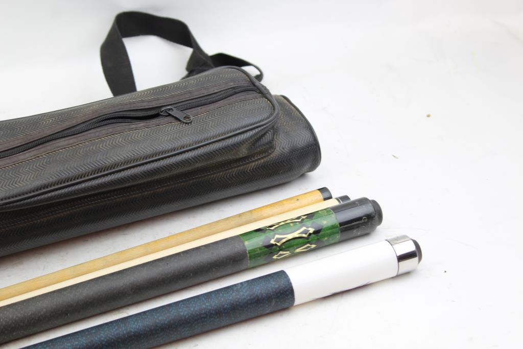 Players And Harvard Pool Cues In Case