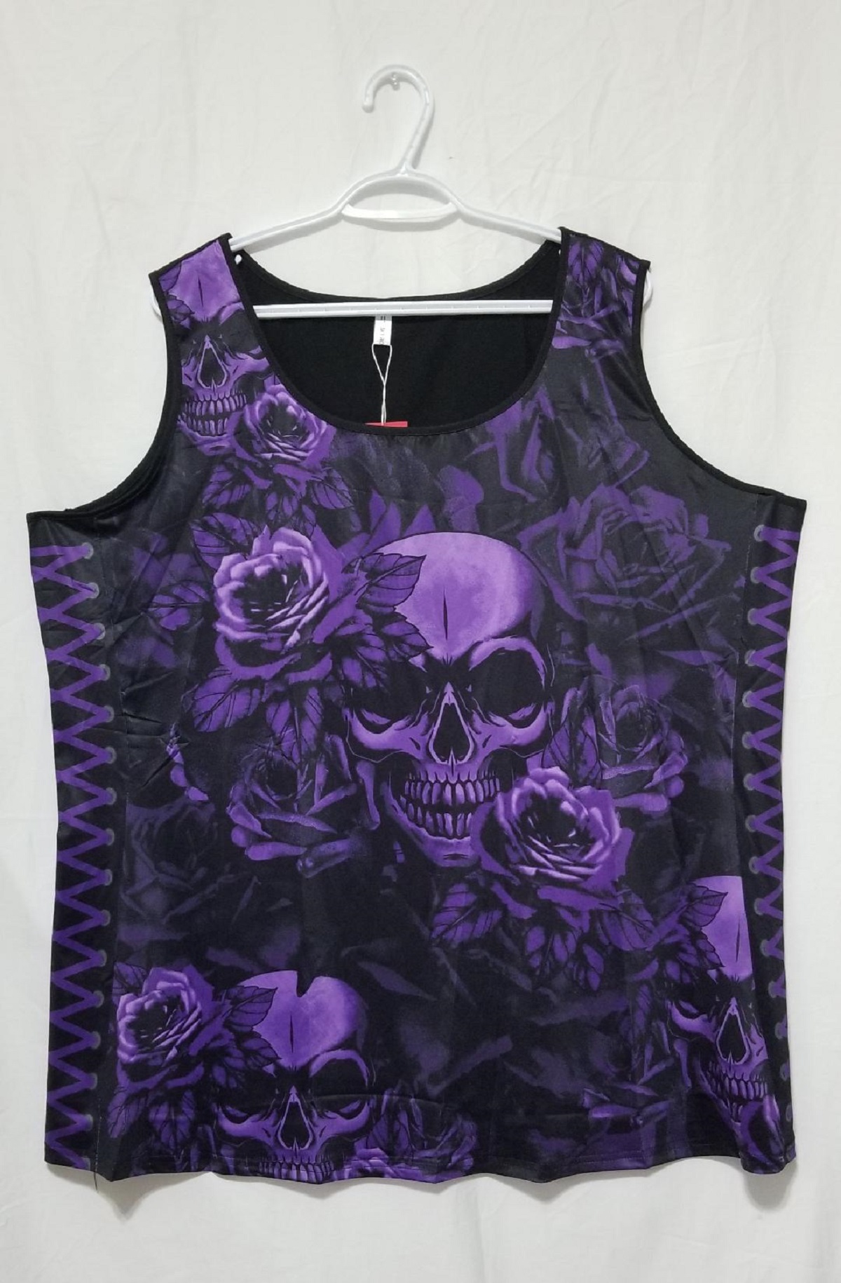 PLUS SIZE SKULL FLORAL PRINT GOTHIC TANK TOP-5X