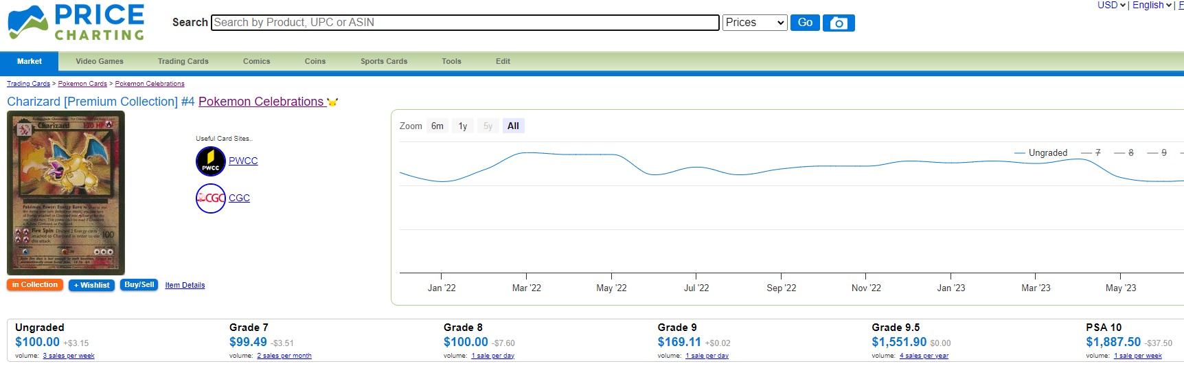Pokemon Charizard Gold Metal - Celebrations Ultra-Premium Collection CGC MINT 10 - Price Guide $1,887.50 - Reserve is 47% lower than that price!