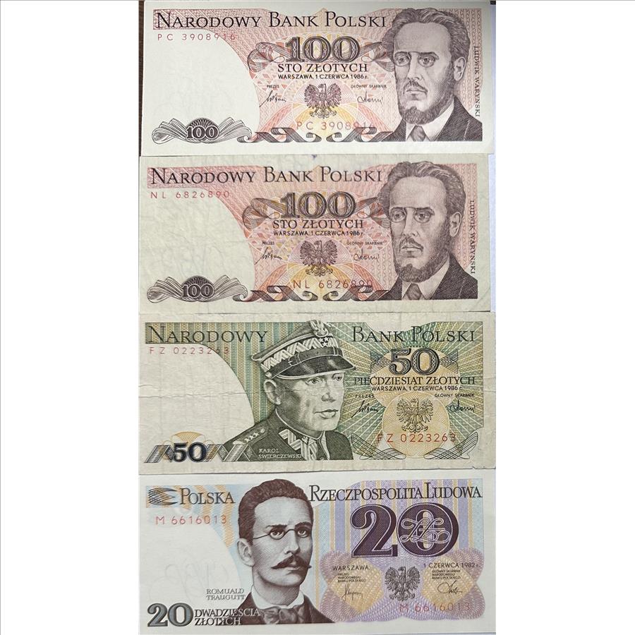Poland Paper Currency - (2) 100 Zlotych, a 50 and a 20 Zlotych Note - 4 Crisp and Colorful Banknotes
