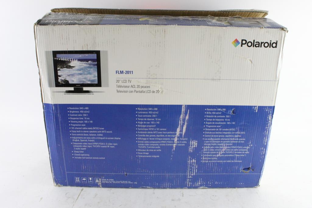 Get a great deal with this online auction for a TV presented by Property Room on behalf of law enforcement or public agency client. Model: FLM-2011 Screen Size: 20" Date of Manufacture: Unknown Measurements: Unknown Base: Yes Remote Control: Yes Power Cord: Yes Physical Condition: New in open box Testing Results: Item has not been tested