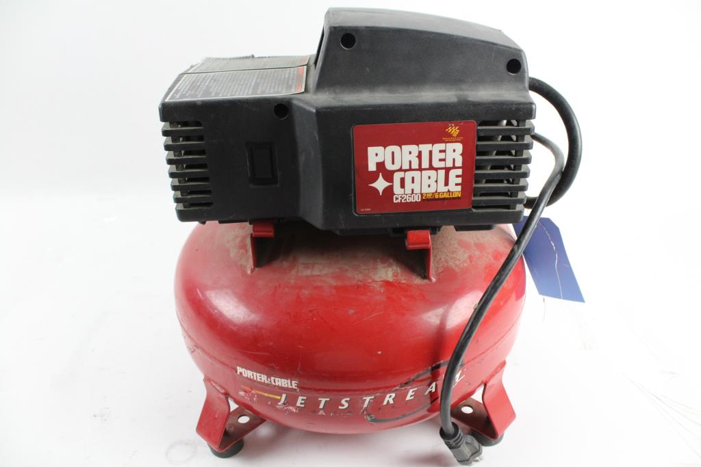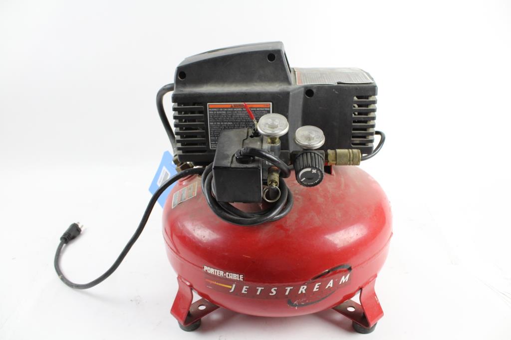 Get a great deal with this online auction for an air compressor presented by Property Room on behalf of a law enforcement or public agency client. - Porter Cable Jetstream 2 HP/6 gallon air compressor