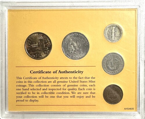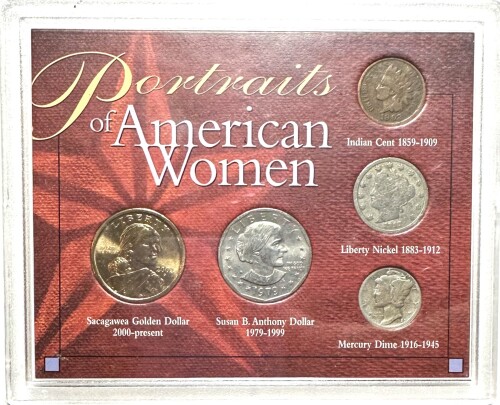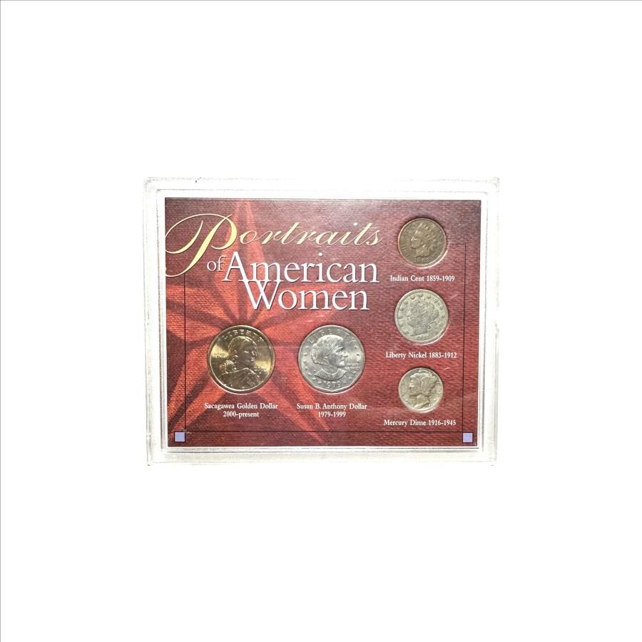 Portraits of American Women - 1970-S Dollar, 2002-P Sacagawea Golden Dollar, 1949 Liberty Dime, 1912 V Nickel & 1902 Indian Cent
