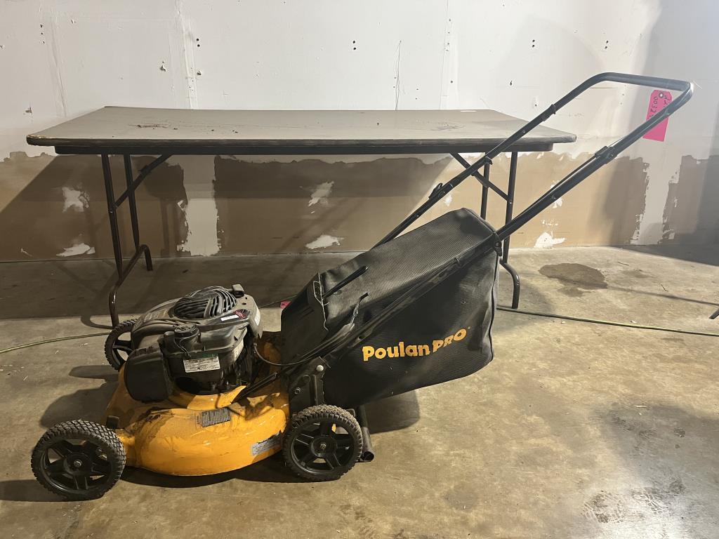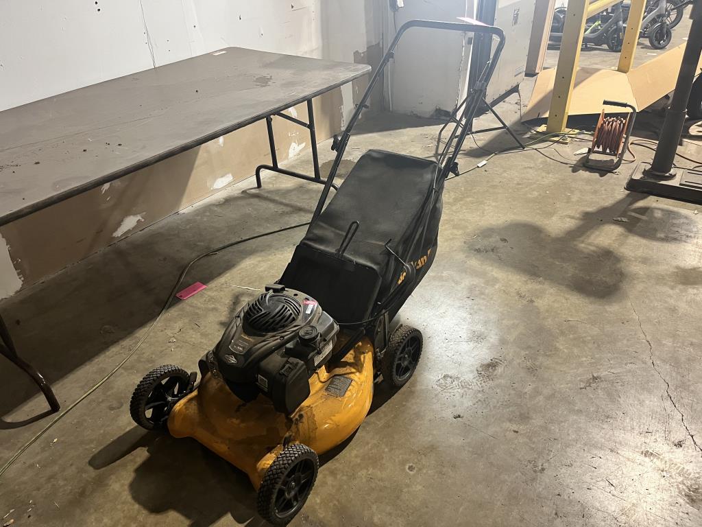 - Item info: gas powered, pull cord start, self propelled, adjustable cut height, Briggs & Stratton, 550EX/ 140cc, 5.50, side and rear discharge, mulch and foldable handles.