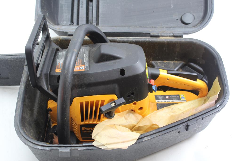 Get a great deal with this online auction for a chainsaw presented by Property Room on behalf of a law enforcement or public agency client. - Poulan Pro Pp4018 Gas Powered Chainsaw And Case