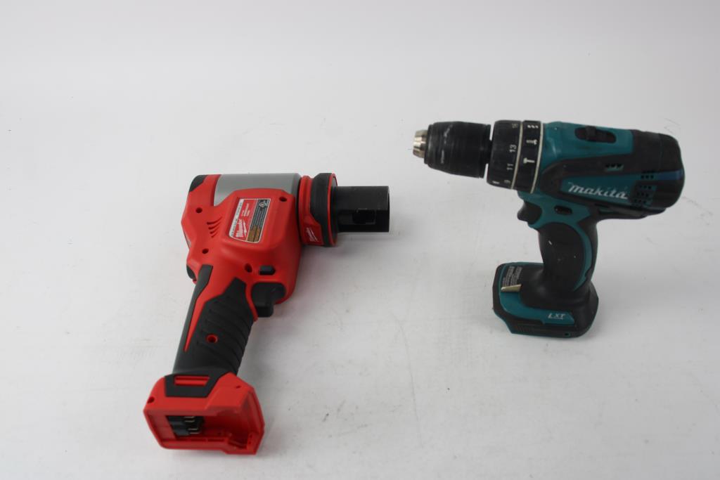 Get a great deal with this online auction presented by PropertyRoom.com on behalf of a law enforcement or public agency client. - Milwaukee 10-ton knockout tool, Craftsman grinder with battery, Makita drill/driver
