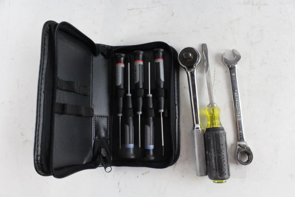 - Ratchet, precision screwdrivers,