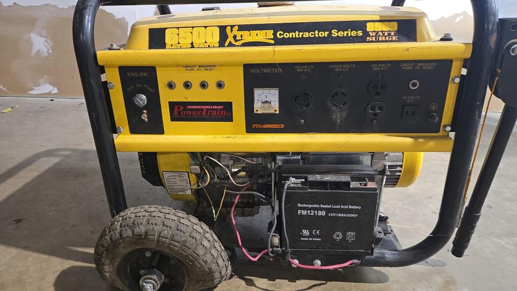 - Item info: 6500 rated watts, 8500 watt surge, 5 plugs, voltage meter, gas powered, engine switch with key