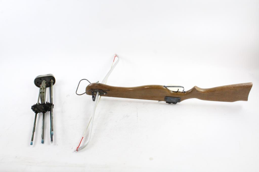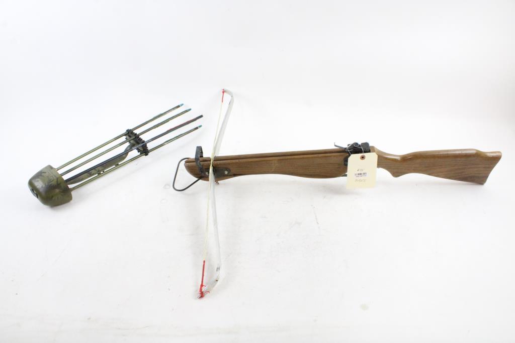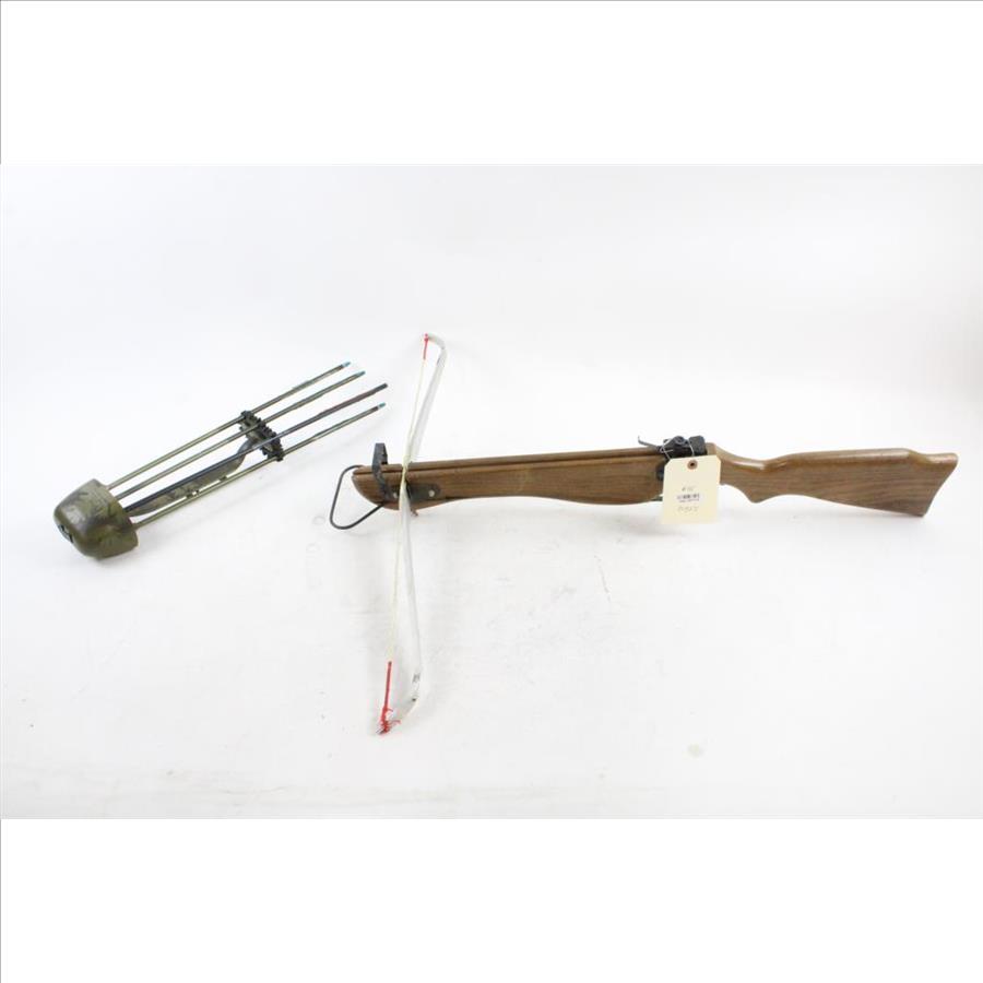Get a great deal with this online auction for a crossbow presented by Property Room on behalf of law enforcement or public agency client. Model: Unknown Color: Brown, with metal bow Bow Length: 31" Draw Length: Unknown Draw Weight: Unknown Draw: N/A Accessories: Quiver, arrows Cosmetic Condition: Good, scratches, scuffs, dirt and wear Shipment by PropertyRoom to any jurisdiction does not mean this item is legal in such jurisdiction. It is your responsibility to have knowledge of, obey, or comply with all applicable laws relating to this item.