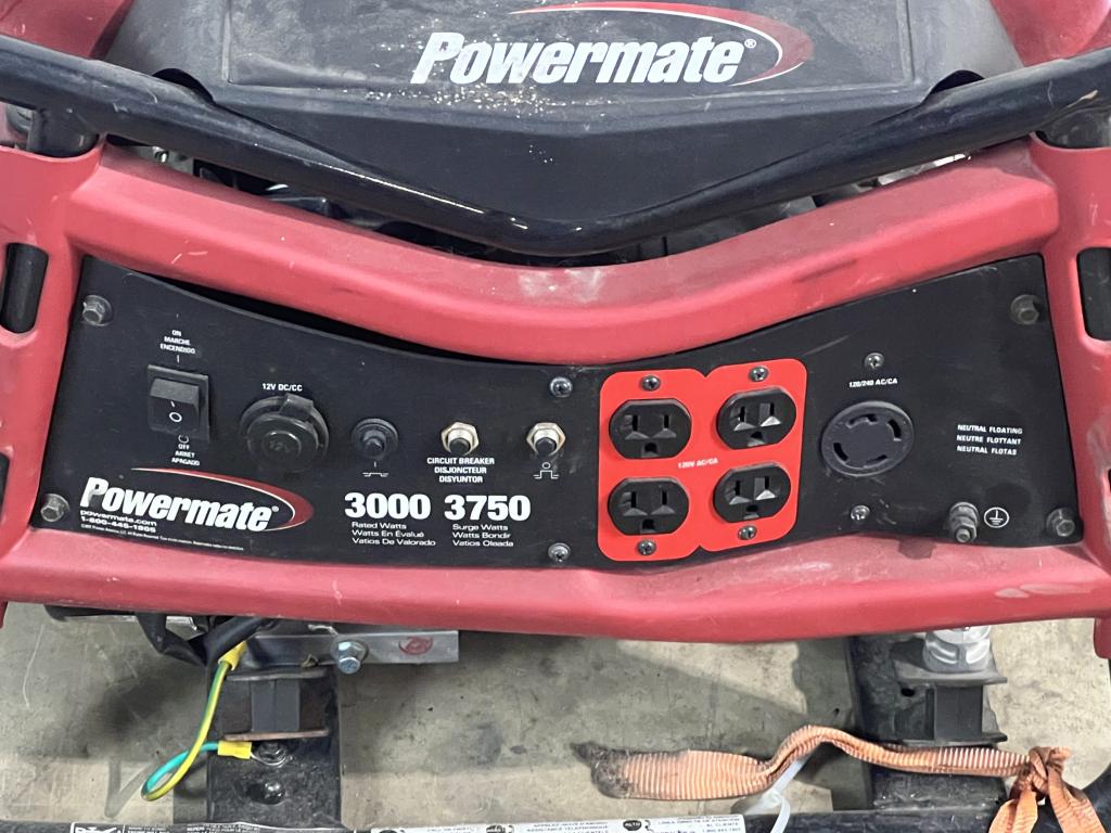 - Item info: gas powered, pull cord start, on/off button, 12V plug, 3000w Running, 3750 starting watts, 2 circuit breakers, 2 sets 120v wall plugs, single 120/240v plug, easy lift handles