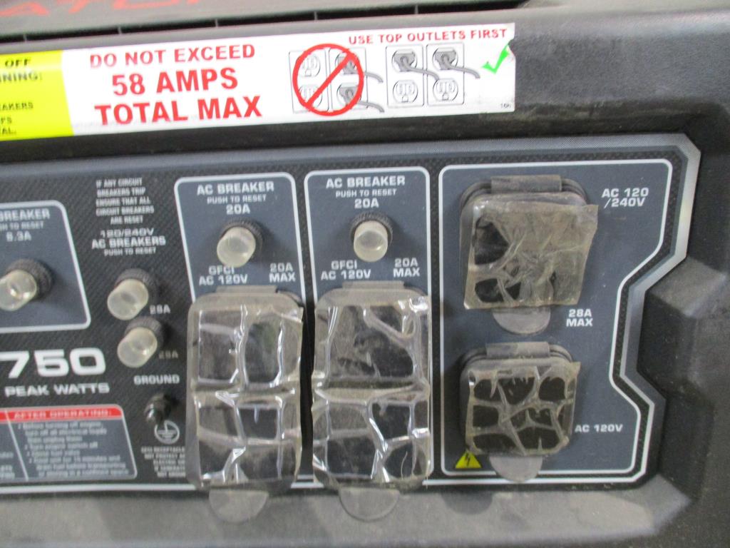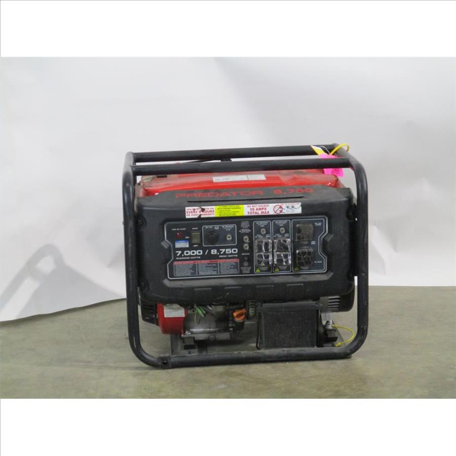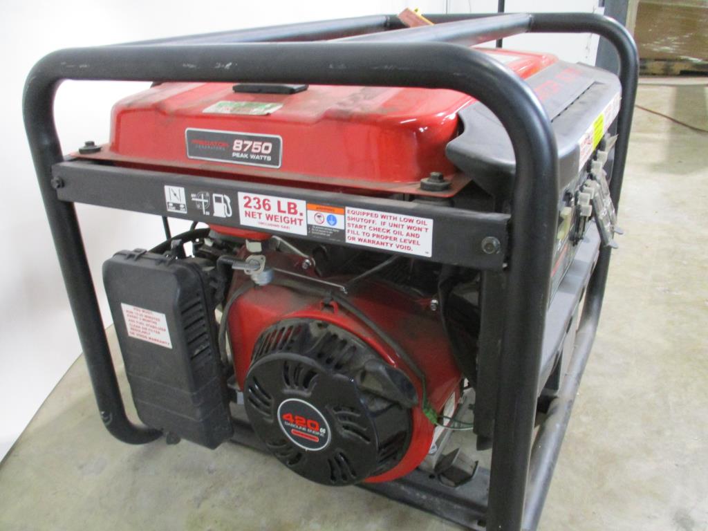 - Acessories: Gas powered, Predator 420cc engine, pull cord start, fuel guage, low oil alert light, start button, DC 12v 8.3 a, dc breaker, 2 ac 120/240 v breakers, 2 dual 120v 20a plugs, 2 20a ac breakers, ac 20v plug, ac 120/240 v 20a max plug.