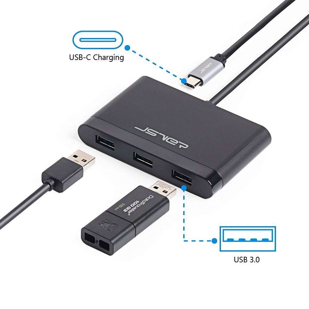 • USB-C data hub with 3 super speed USB 3.0 interfaces for data transfer of up to 5Gbps, which is 10 times faster than USB 2.0