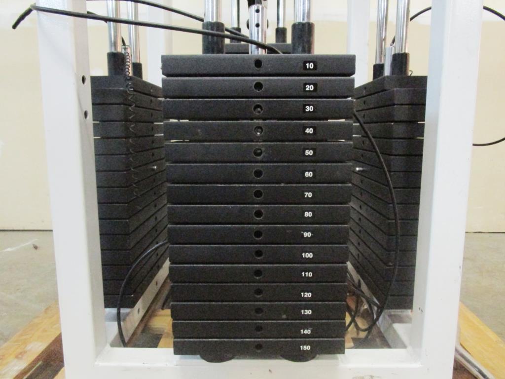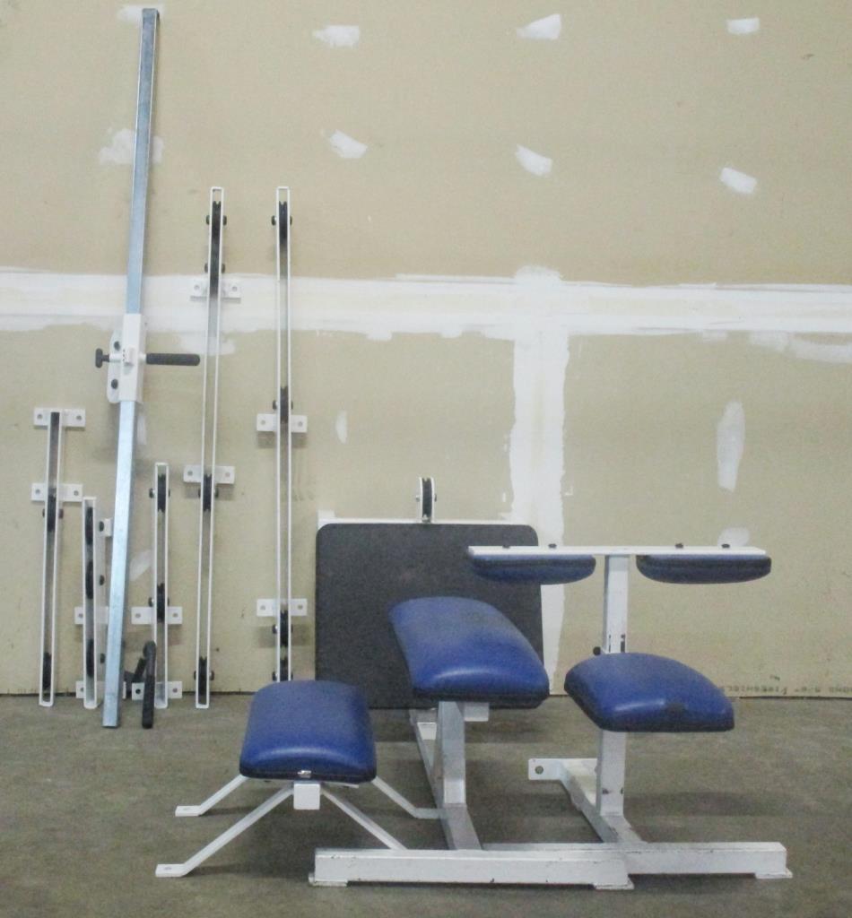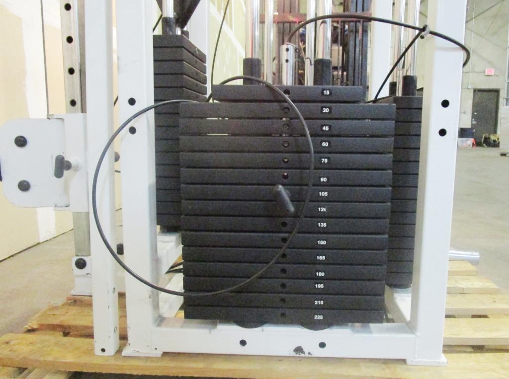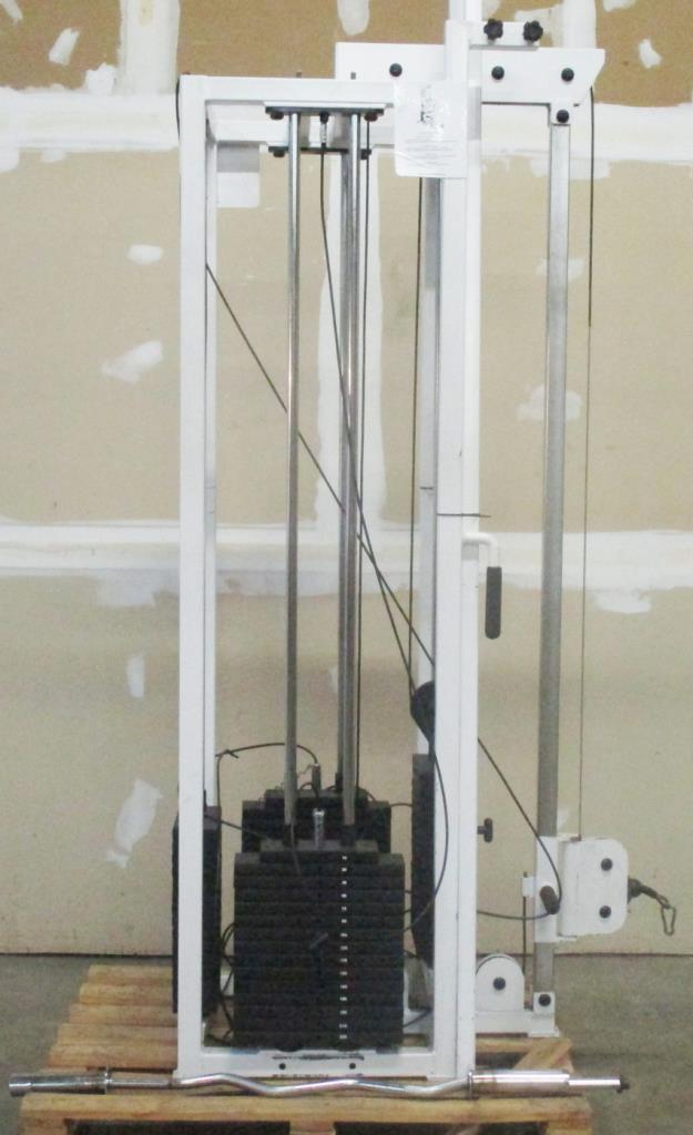- Lat pull station max 225lbs, Trceps extension station standing max 150lbs, Low roll stationmax 225lbs, calf roll station max 150lbs, maybe missing parts, 4 station multi gym.