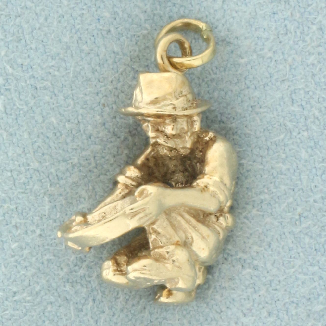 Prospector Gold Miner Panning Charm in 14k Yellow Gold