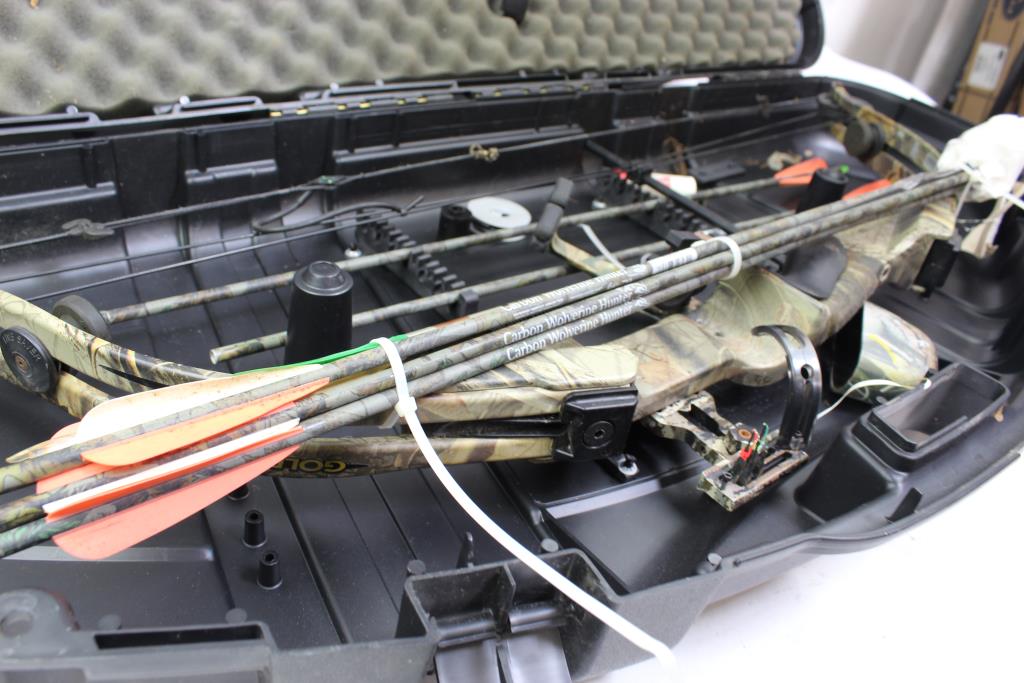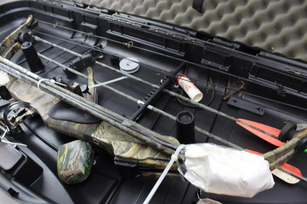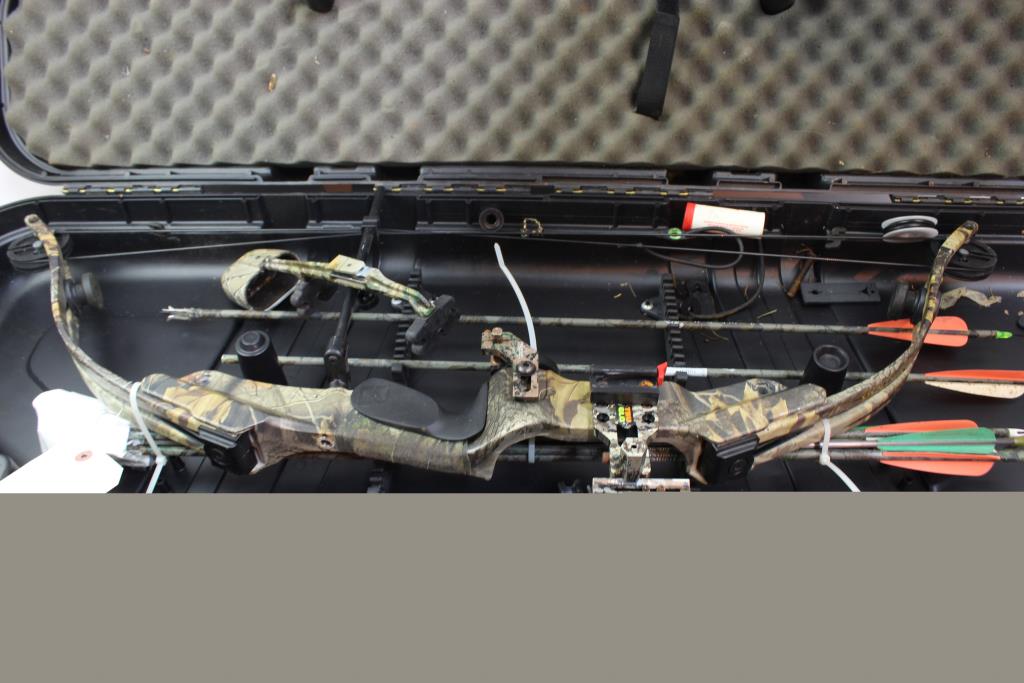 Get a great deal with this online auction presented by PropertyRoom.com on behalf of law enforcement or public agency client. Model: Protech Golden Eagle Compound Bow Color: camouflage Bow Length: Approx 39 1/2" Draw Length: not listed Draw Weight: not listed Draw: Right Hand Accessories: case Cosmetic Condition: fair condition, may have visible wear, may have scuffs, scratches or scrapes, may be dirty. Condition varies by item. Parts, pieces, accessories may be missing or are not included. Shipment by PropertyRoom to any jurisdiction does not mean this item is legal in such jurisdiction. It is your responsibility to have knowledge of, obey, or comply with all applicable laws relating to this item.