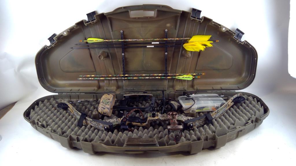 Get a great deal with this online auction presented by PropertyRoom.com on behalf of a law enforcement or public agency client. Color: Camo Bow Length: 40" Draw Length: Unknown Draw Weight: Unknown Draw: Right Hand Accessories: Arrows, Case Cosmetic Condition: Good with scratches Shipment by PropertyRoom to any jurisdiction does not mean this item is legal in such jurisdiction. It is your responsibility to have knowledge of, obey, or comply with all applicable laws relating to this item.