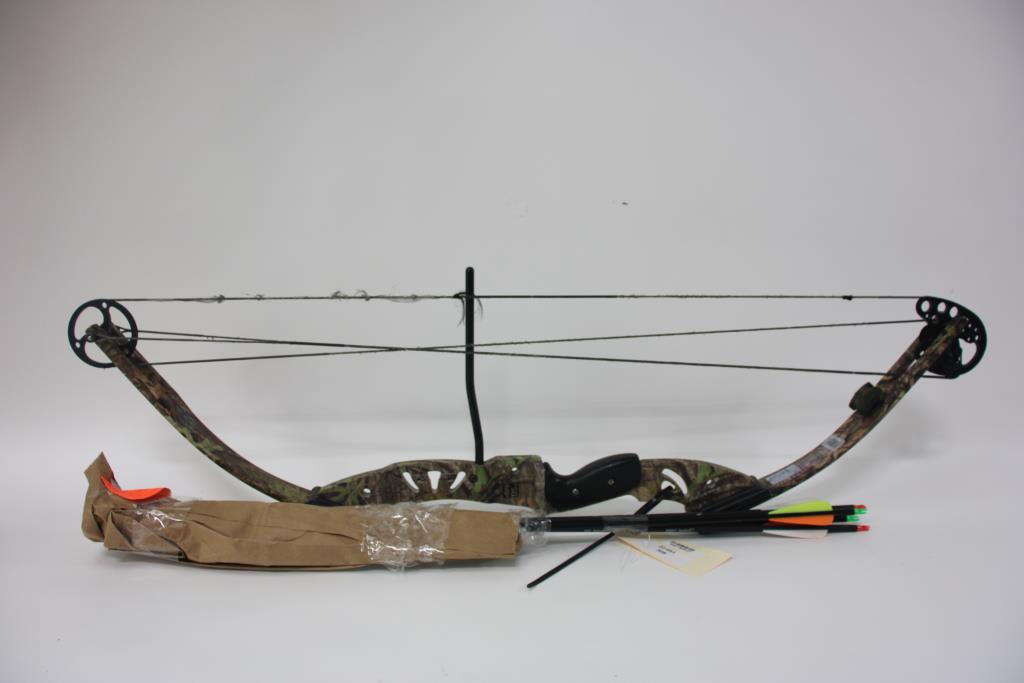 Get a great deal with this online auction presented by PropertyRoom.com on behalf of a law enforcement or public agency client. Model: unknown Color: Camoflauge Bow Length: 37in Draw Length: unknown Draw Weight: unknown Draw: Right Hand Accessories: Arrows Cosmetic Condition: Good Condition, visibly worn, has scratches and is a little dirty. Shipment by PropertyRoom to any jurisdiction does not mean this item is legal in such jurisdiction. It is your responsibility to have knowledge of, obey, or comply with all applicable laws relating to this item.