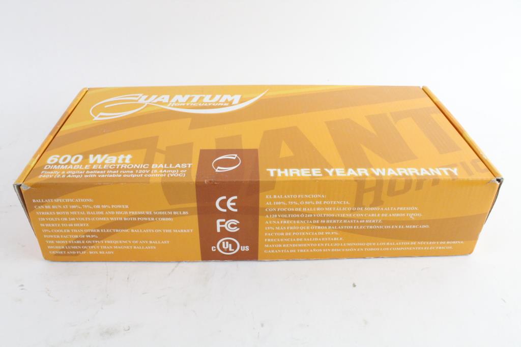 Get a great deal with this online auction presented by PropertyRoom.com on behalf of law enforcement or public agency client. Model: QT600 Watts: 600 Type: Metal Halide or High Pressure Sodium [120-240V/50-60Hz/5.4-2.6A Measurements: 11.5" x 4.2" x 3" Cosmetic Condition: New, in open box, box is damaged Power Cord Condition: Not Cut - Testing Results: Item is untested due to lack of proper testing equipment.