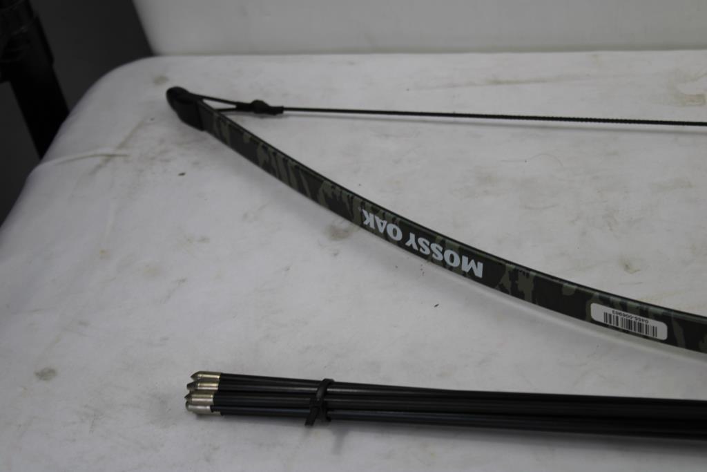 Get a great deal with this online auction presented by PropertyRoom.com on behalf of a law enforcement or public agency client. Model: Mossy Oak Bow Length: 43" approx Accessories: arrows Cosmetic Condition:used, good Shipment by PropertyRoom to any jurisdiction does not mean this item is legal in such jurisdiction. It is your responsibility to have knowledge of, obey, or comply with all applicable laws relating to this item.