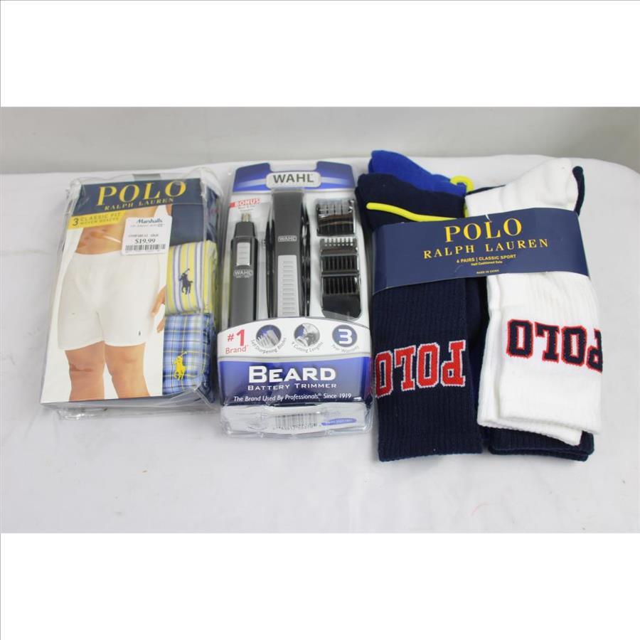 Ralph Lauren Socks, Boxers, Sweater, Tees, Sizes Med-Lg, 5 Pieces With Beard Trimmer