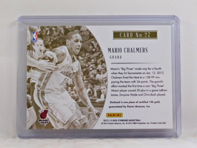 RARE 14K Gold Mario Chalmers Miami Heat .8 Gram Gold Disk Panini Gold Rush Basketball Card - Mint Condition