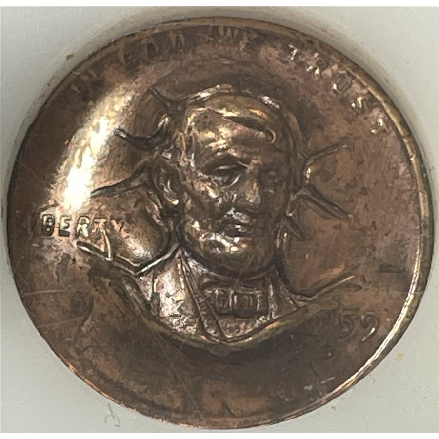 RARE 1959-D Lincoln Wheat Cent 3-D Pop Out Repousse Coin in Protective Acrylic Holder