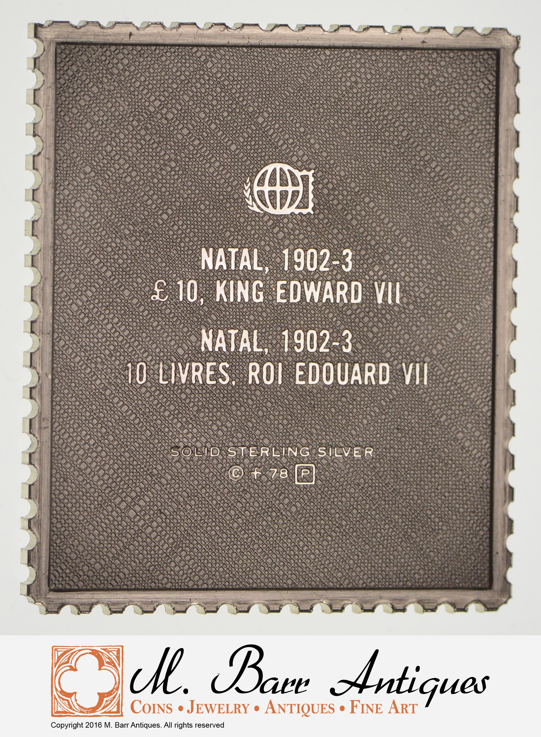 Rare - Historic Stamp Sterling Silver Medallion 14.3 Grams