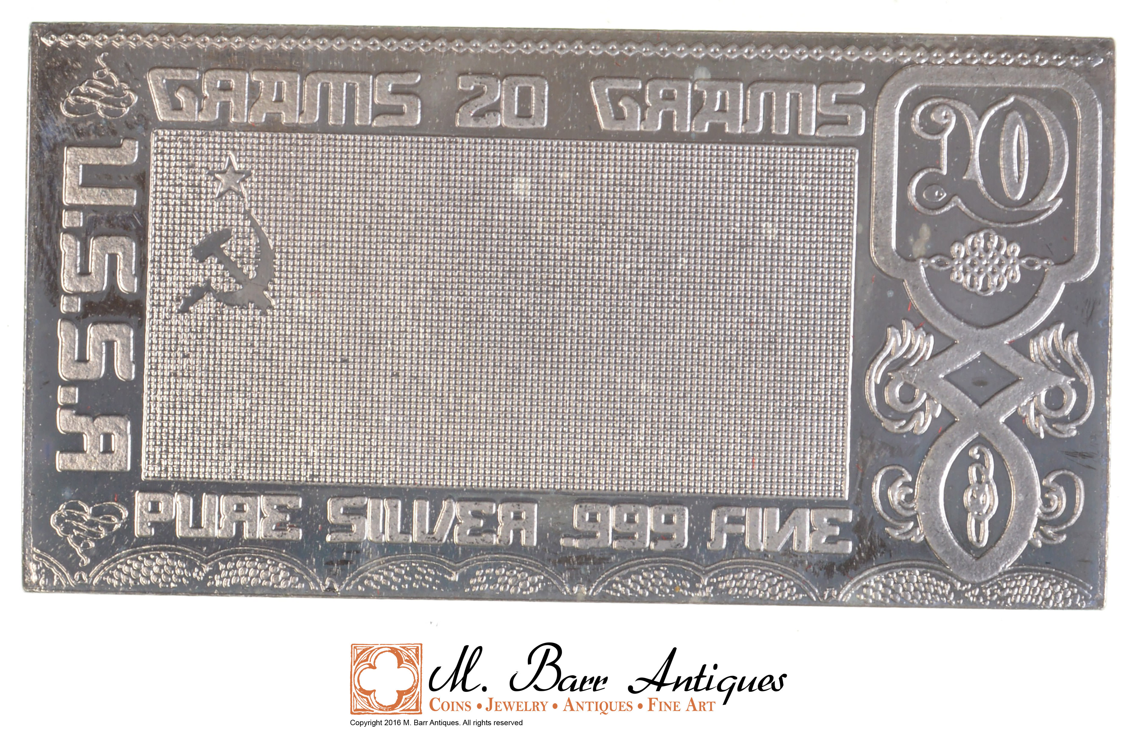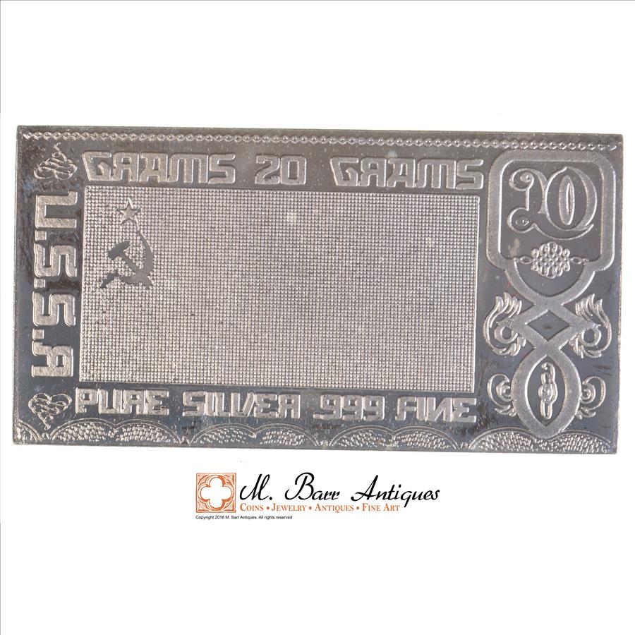 Rare Limited Edition - 20 Grams Silver U.S.S.R. Bar - .999 Fine Silver